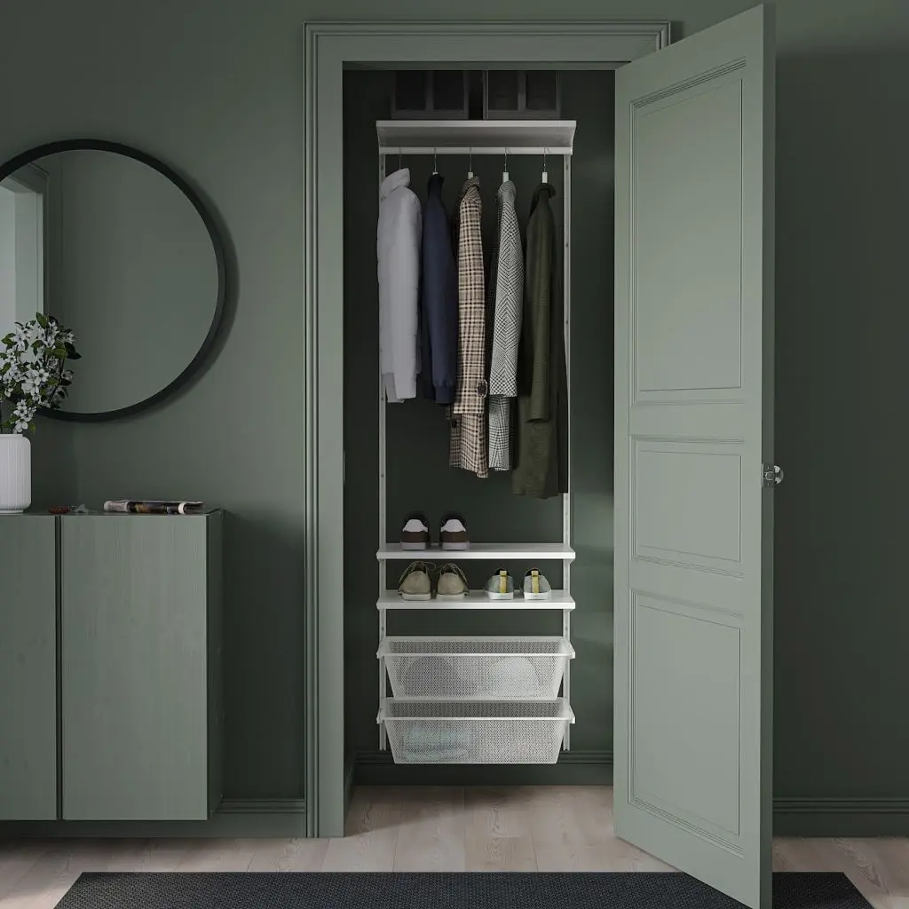 При необходимости эту комбинацию для хранения легко изменить или дополнить. Возможно, предлагаемая нами комбинация идеально подойдет для вашего интерьера, или вы можете создать решение для хранения самостоятельно.Внутренние элементы БОАКСЕЛЬ легко установить или снять, поэтому вы без труда реорганизуете пространство, измените или переместите решение при необходимости или по желанию.В сетчатую корзину БОАКСЕЛЬ 60 см можно положить 6 пар сложенных брюк или 10 футболок.На платяную штангу БОАКСЕЛЬ 60 см можно повесить примерно 20 рубашек на плечиках.Мебель необходимо крепить к стене.Различные материалы стен выдерживают разную нагрузку. Например, гипсокартон не может выдерживать вес, который могут выдержать стены из дерева, бетона или кирпича.Для разных стен требуются различные крепежные приспособления. Подберите подходящие для ваших стен шурупы, дюбели, саморезы и т. п. (не прилагаются).Если Вы не уверены, какой тип креплений использовать, обратитесь в специализированный магазин.Для сборки этой мебели требуются два человека.Дизайнер
