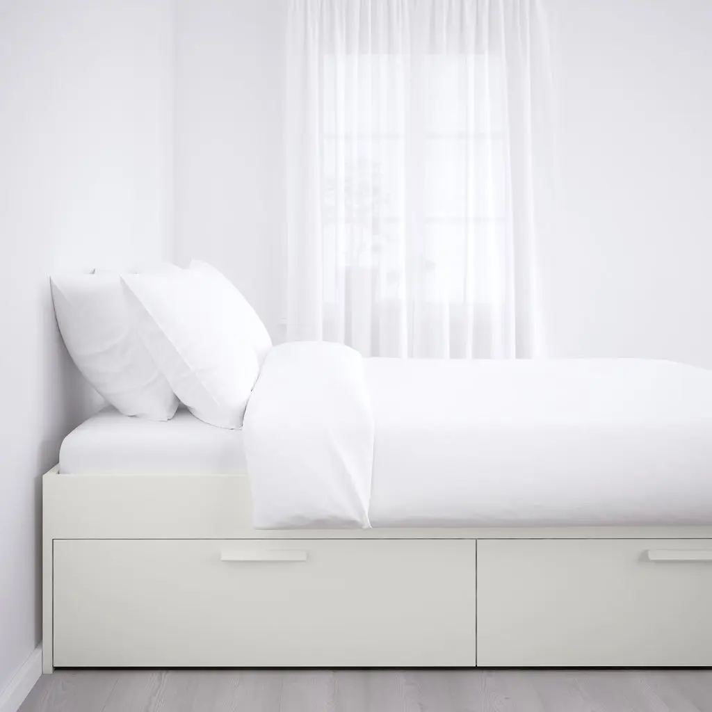 Жизнь в ограниченном пространстве требует изобретательности. Вот почему мы предлагаем обратить внимание на этот каркас кровати с 4 вместительными ящиками. В серии БРИМНЭС есть еще несколько предметов, которые помогут вам эффективно использовать место.