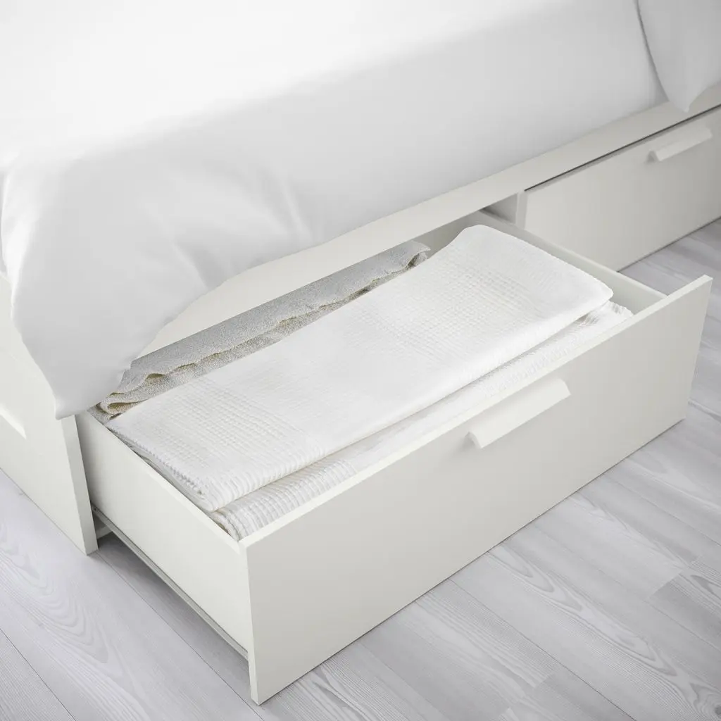 В 4 вместительных ящиках под кроватью достаточно места для хранения одеял, подушек и постельного белья.Этот компактный каркас кровати идеально подходит для небольших помещений, позволяя максимально эффективно использовать пространство вашей спальни.Благодаря колесикам ящики легко выдвигать и задвигать.Каркас кровати универсального дизайна будет прекрасно смотреться с разным текстилем для спальни и сочетаться с другой мебелью.Регулируемые боковины кровати позволяют использовать матрасы разной толщины.42 многослойные рейки, разделенные на 5 зон комфорта, распределяют вес тела и усиливают амортизирующий эффект матраса.В цену этой комбинации включена центральная перекладина СКОРВА, необходимая для обеспечения устойчивости каркаса. При покупке в магазине вам необходимо взять отдельно упакованную перекладину. При покупке онлайн перекладина уже включена в доставку.Реечное днище включено в стоимость, но упаковано отдельно.Матрас и постельное белье продаются отдельно.Можно дополнить изголовьем БРИМНЭС.Дизайнер