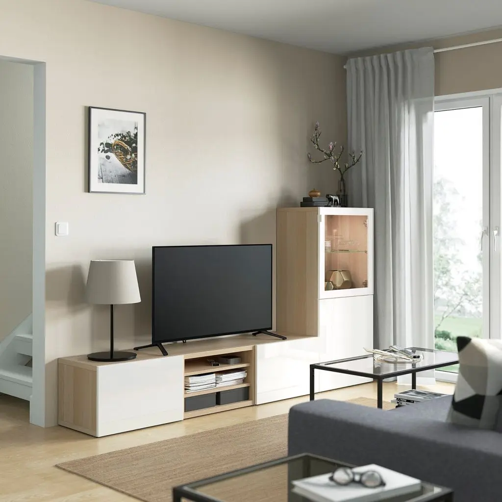 Благодаря нескольким отверстиям на задней панели тумбы под ТВ провода от телевизора и других устройств всегда будут под рукой, но не на виду.Специальное отверстие в верхней панели обеспечит удобное и компактное размещение проводов.Ящики со встроенным нажимным механизмом открываются легким нажатием.Два ящика и полки за дверцами обеспечат достаточно места для хранения.Съемные полки позволяют регулировать пространство.Организуйте и оптимизируйте систему для хранения БЕСТО, используя подходящие коробки и вставки.Для функционирования нажимного механизма необходимо пространство между каркасом и фронтальной панелью ящика, чтобы ящик открывался нажатием. Небольшой зазор необходим для обеспечения этой функции и не является недостатком товара.Чтобы создать единый интерьер во всем доме, фасады СЕЛЬСВИКЕН можно комбинировать с подходящими дверями ФАРДАЛЬ для гардероба ПАКС.Эту мебель необходимо крепить к стене с помощью прилагаемого стенного крепежа.Будьте осторожны при обращении с закаленным стеклом! Из-за поврежденных краев и царапин на поверхности стекло может внезапно разбиться.