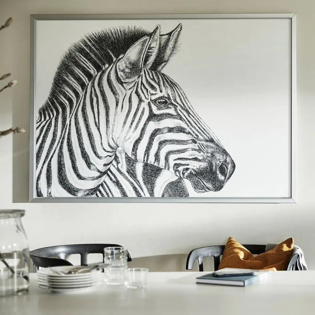 Картина с рамой, Зебра/цвет алюминия, 140x100 см