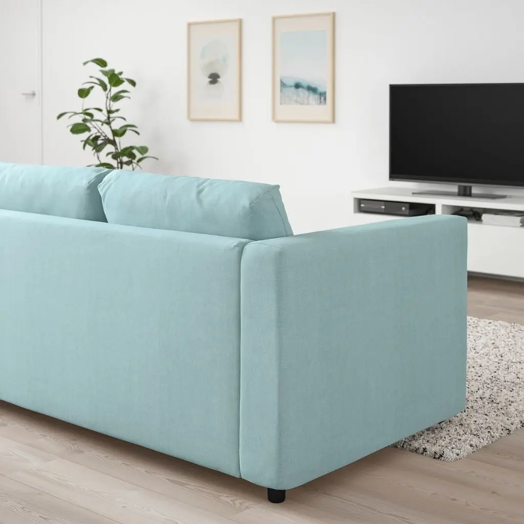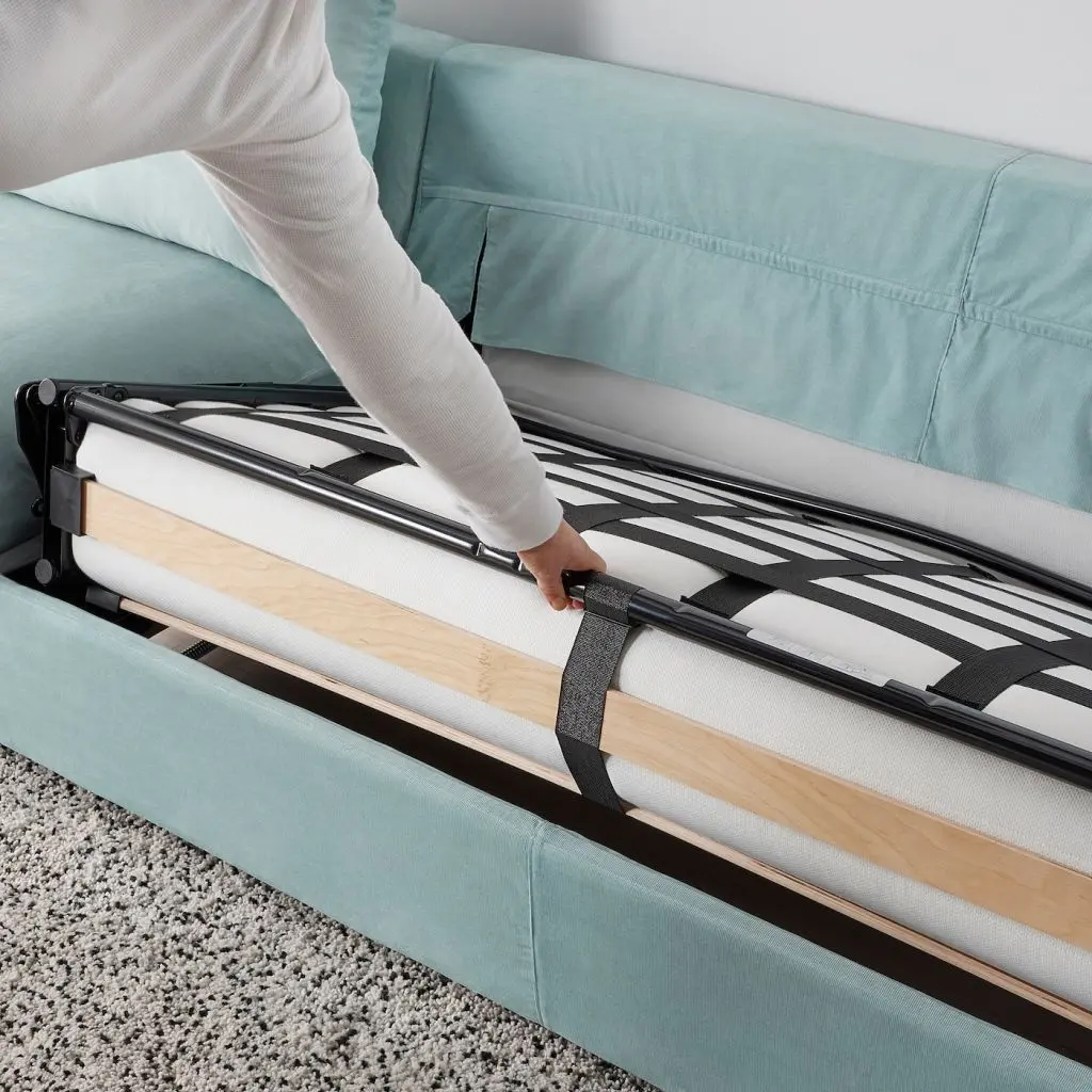 Секции ВИМЛЕ можно по-разному комбинировать, чтобы создать диван, максимально соответствующий вашим потребностям и возможностям помещения. В этой комбинации есть диван-кровать с комфортным высоким матрасом.