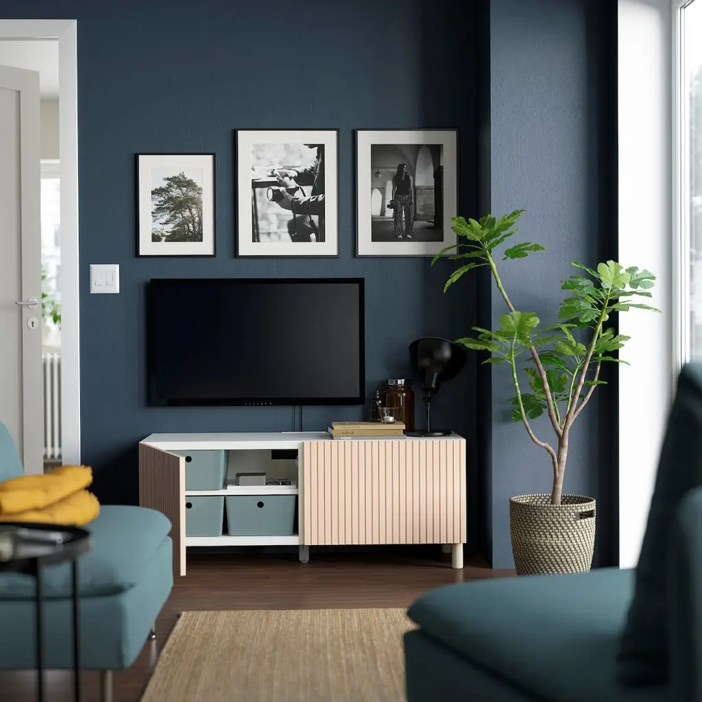 Секрет идеального порядка в гостиной прост: достаточно места для хранения и возможность спрятать провода различных устройств. Выберите готовую комбинацию или создайте свое решение. Это один из многих вариантов.