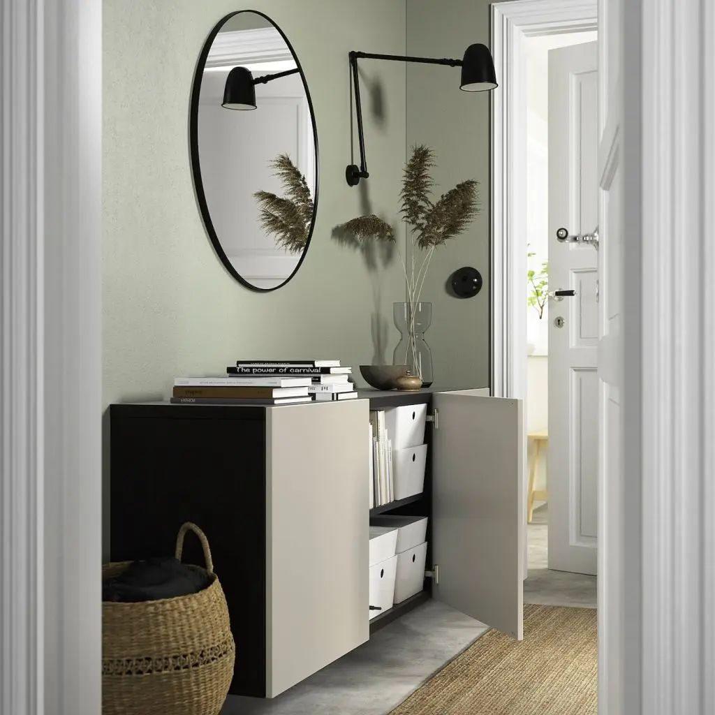 Настенное крепление придает тумбе лаконичный современный вид и облегчает уборку пола.Съемные полки позволяют регулировать внутреннее пространство в соответствии с потребностями хранения.Конструкция петель позволяет отрегулировать и выровнять дверцу по вертикали и по горизонтали. Дверцы защищают содержимое и выполняют декоративную функцию. Выберите дверцы, подходящие к интерьеру Вашего дома.Организуйте и оптимизируйте систему для хранения БЕСТО, используя подходящие коробки и вставки.Эта комбинация состоит из нескольких частей. Используйте верхнюю панель БЕСТО, чтобы закрыть соединения между каркасами. Продается отдельно.Если вы выберете функцию плавного закрывания, рекомендуем дополнить фасады ручками, чтобы открывать ящики/шкафы было удобнее.Накладная шина БЕСТО для фиксации к стене прилагается.Максимальная нагрузка на подвесной шкаф зависит от материала стены.Для разных стен требуются различные крепежные приспособления. Подберите подходящие для ваших стен шурупы, дюбели, саморезы и т. п. (не прилагаются).
