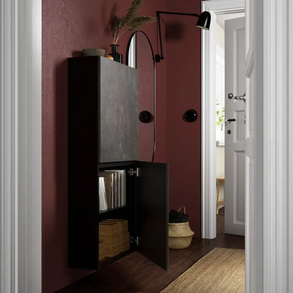 Компактные навесные шкафы позволяют эффективно задействовать стену под хранение вещей.Конструкция петель позволяет отрегулировать и выровнять дверцу по вертикали и по горизонтали. Вы можете использовать нажимной механизм или устройство для плавного закрывания. В первом варианте для открывания дверцы достаточно слегка нажать на нее. А во втором – гарантировано плавное и бесшумное закрывание.Дверь можно установить справа или слева.Предусмотрите минимум 5 см между верхней панелью каркаса и потолком, чтобы каркас можно было установить на накладную шину.Для разных стен требуются различные крепежные приспособления. Подберите подходящие для ваших стен шурупы, дюбели, саморезы и т. п. (не прилагаются).Максимальная нагрузка на закрепленный на стене каркас зависит от материала стены.Если вы выберете функцию плавного закрывания, рекомендуем дополнить фасады ручками, чтобы открывать ящики/шкафы было удобнее.2 регулируемые по высоте полки прилагаются.Накладная шина БЕСТО для фиксации к стене прилагается.