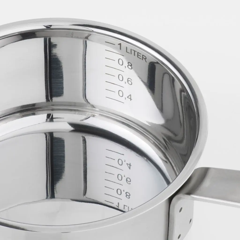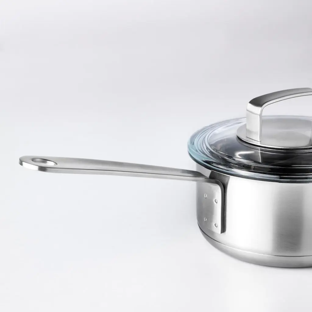 Бесплатно 15 лет гарантии. Подробнее об условиях гарантии – в гарантийной брошюре.Стеклянная крышка позволяет контролировать процесс приготовления блюда. С мерной шкалой на внутренней поверхности – легко измерить количество жидкости.Трехслойная конструкция дна: слой алюминия между двумя слоями нержавеющей стали. Обеспечивает равномерное нагревание, поэтому пища не пригорает и не прилипает к поверхности.Благодаря форме ручек маленькие кастрюли можно ставить в большие, что обеспечивает экономию места в кухонном шкафу.Подходит для всех типов варочных панелей, включая индукционную.Внешняя поверхность из матовой стали, на которой пятна менее заметны, чем на глянцевой поверхности.Благодаря отверстию для вентиляции давление снижается и содержимое не выкипает.Сделано из нержавеющей стали. Прочный и простой в уходе материал.Эту посуду можно использовать в духовке, так как она изготовлена из металла, а крышка – из жаропрочного стекла.Использование крышки обеспечивает быстрое закипание, что сокращает время приготовления и расход энергии.Дизайнер