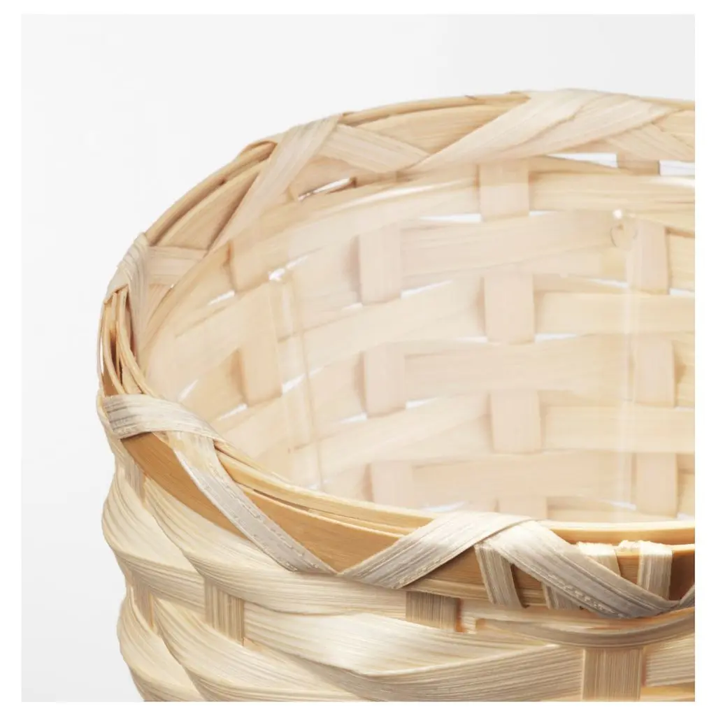 Это кашпо изготовлено вручную искусным мастером из маленькой вьетнамской деревушки. В качестве материала мы выбрали бамбук, это возобновляемый натуральный материал.