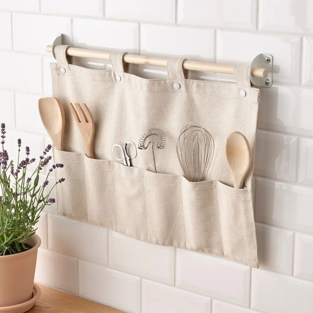Товары серии НЕРЕБЮ позволят хранить все нужное под рукой, не занимая место на столешнице. Прочная ткань текстильных аксессуаров из неокрашенной/небеленой пеньки и хлопка с выразительной фактурой надолго сохранит очарование простоты.