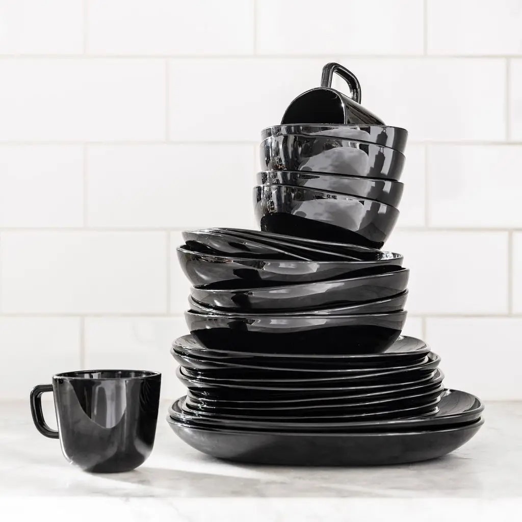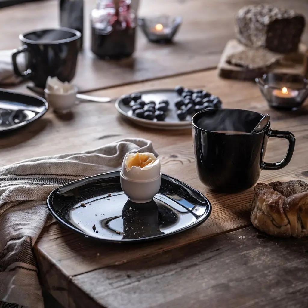 Посуда серии БАККИГ выглядит как керамическая, но сделана из закаленного стекла, поэтому очень устойчива к появлению сколов.