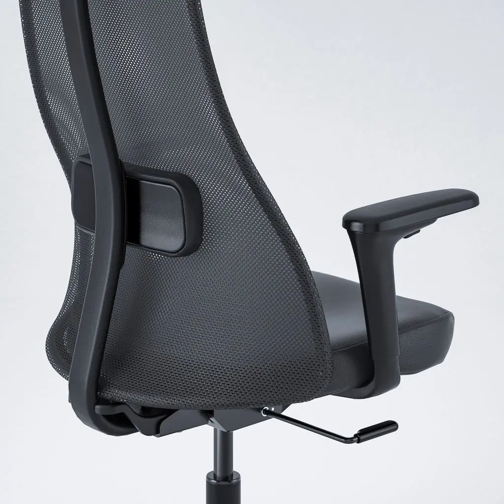 Бесплатно 10 лет гарантии. Подробнее об условиях гарантии — в гарантийной брошюре.Функция регулировки и фиксации наклона обеспечивает устойчивость и максимальный комфорт.Сетчатый материал спинки обеспечивает циркуляцию воздуха, чтобы вам было комфортно сидеть в течение длительного времени.Комфорт для спины благодаря регулируемой глубине сиденья и интегрированной опоре для поясницы.Подголовник и опора поясницы регулируются.Колесики оснащены тормозом безопасности, реагирующим на изменение давления: они разблокируются только под воздействием веса сидящего человека.Подлокотники можно поднять повыше или опустить и подвинуть вперед или назад, чтобы обеспечить рукам комфортную поддержку.Со временем кожаная обивка приобретает красивую патину.Этот стул разработан для офисного использования и соответствует требованиям к прочности и устойчивости следующих стандартов: EN 1335 и ANSI/BIFMA x5.1.Можно дополнить защитным напольным покрытием КУЛУН.Дизайнер