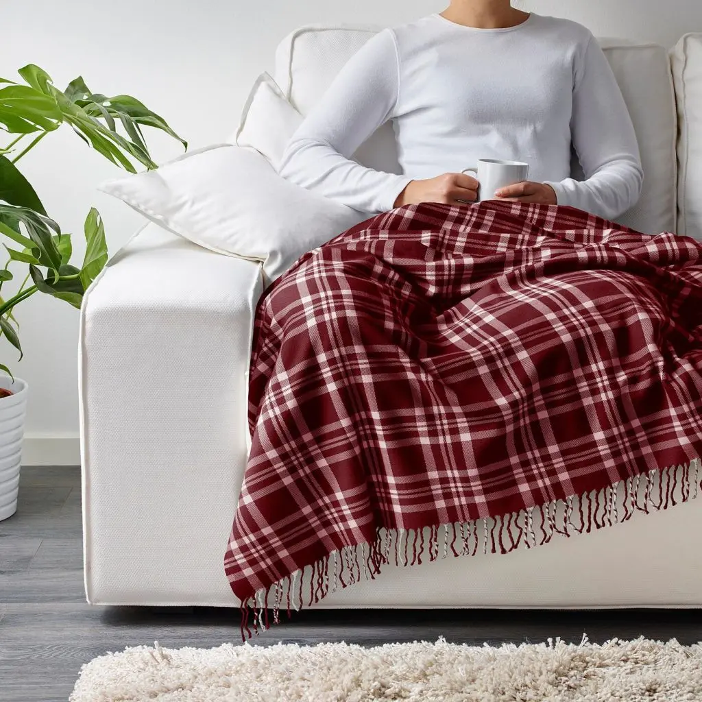 Шерсть обладает устойчивостью к появлению пятен. Этот износостойкий материал отлично сохраняет тепло.Можно уютно укутаться лежа на диване или накинуть на себя, когда прохладно.