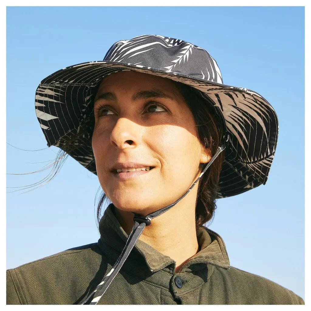 Эта черно-белая шляпа будет защищать голову, лицо и шею от солнечных лучей. Идеальный вариант для пляжа или похода. Даже если шляпа упадет в воду, ткань очень быстро высохнет.