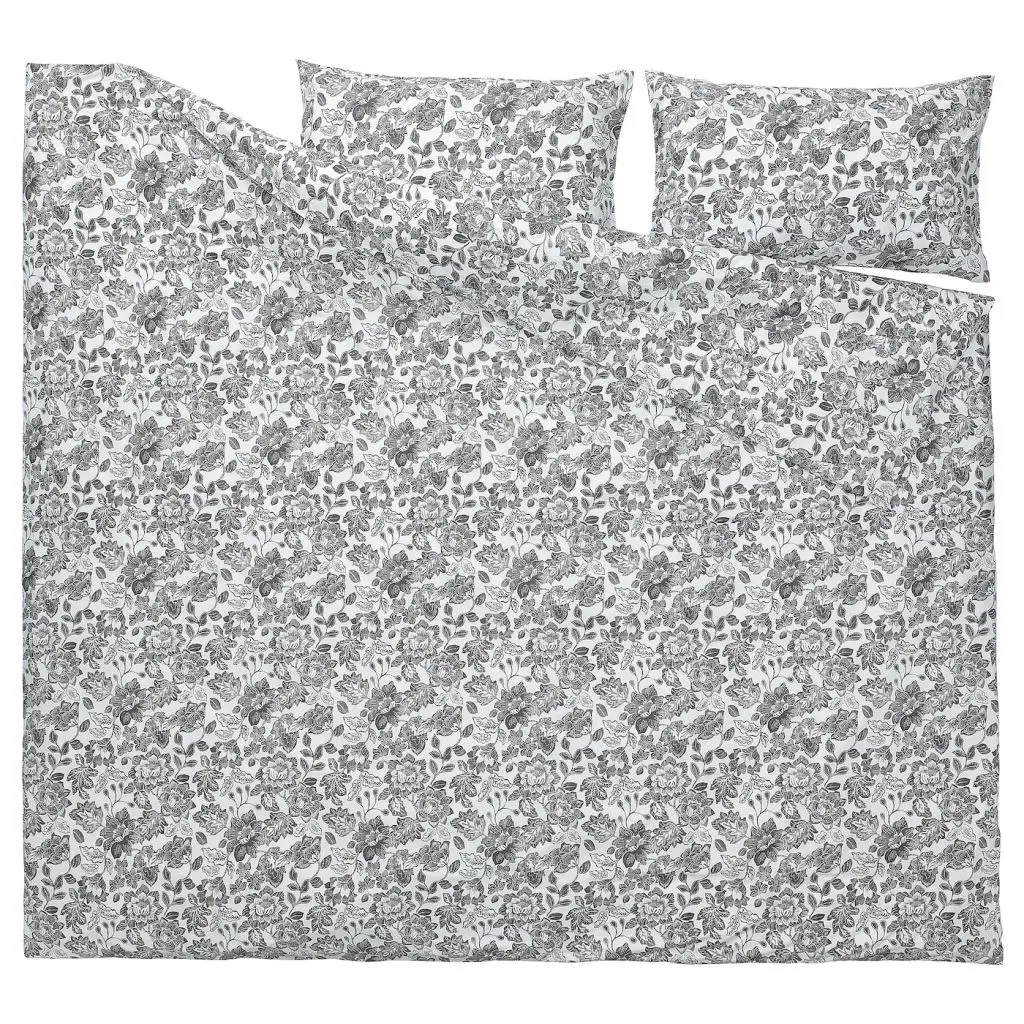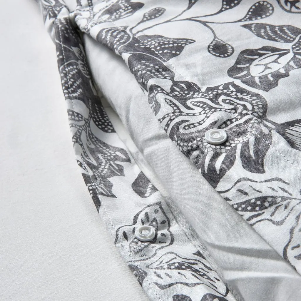 Слегка размытый цветочный орнамент в серых тонах смотрится очень живо и объемно. Смесовая ткань из хлопка и вискозы способствует поддержанию комфортного микроклимата в постели в течение всей ночи.