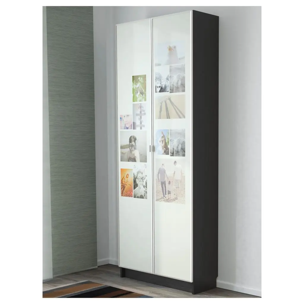 Съемные полки; устанавливайте на разном уровне в соответствии с необходимостью.Отделка из шпона. Создайте собственный дизайн дверцы, вставив фотографию или ткань между стеклом и панелью.Конструкция петель позволяет отрегулировать и выровнять дверцу по вертикали и по горизонтали. Для разных стен требуются различные крепежные приспособления. Подберите подходящие для ваших стен шурупы, дюбели, саморезы и т. п. (не прилагаются).Эту мебель необходимо крепить к стене с помощью прилагаемого стенного крепежа.Белая/черная панель для закрепления за стеклом прилагается.Дизайнер