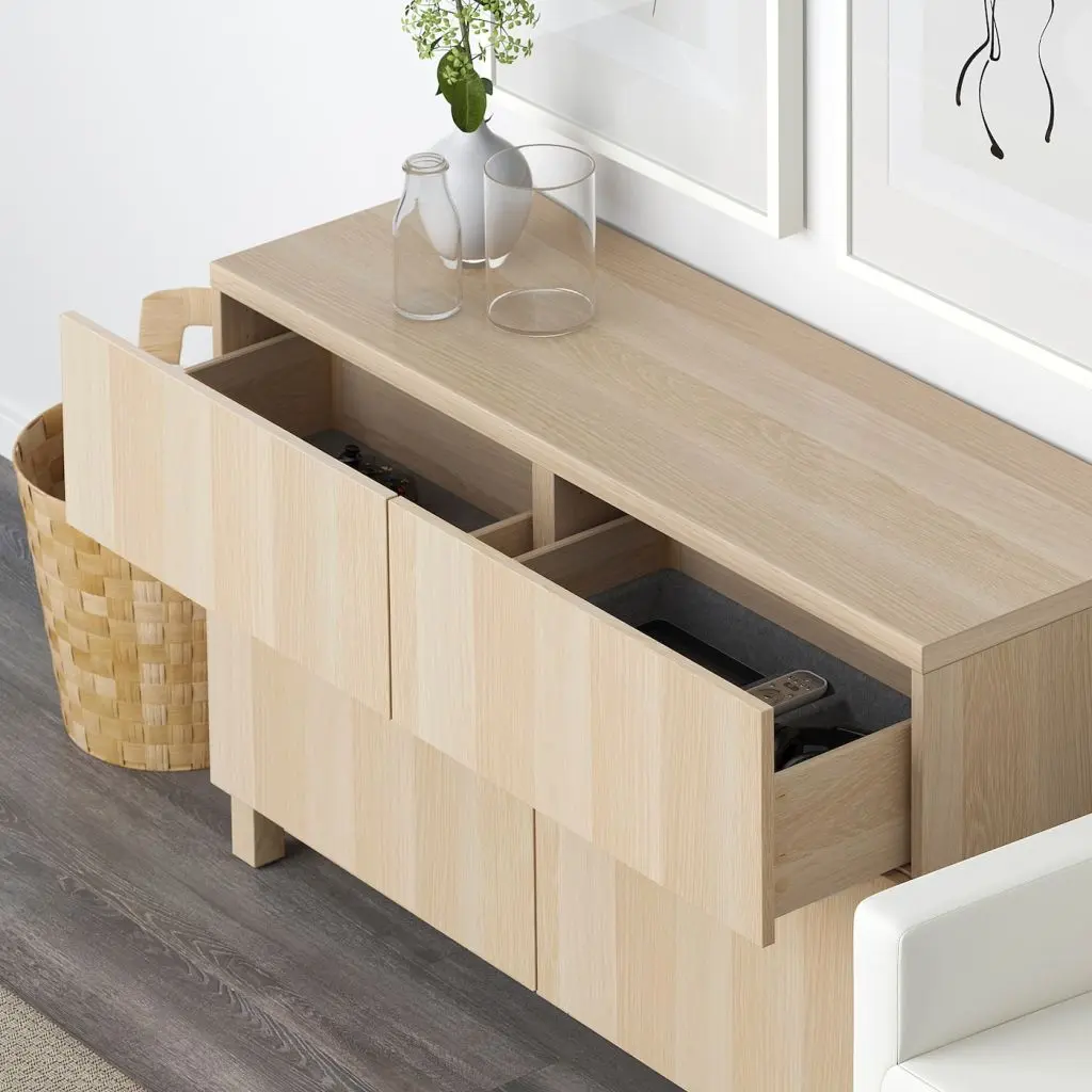 Благодаря доводчикам ящики закрываются плавно и бесшумно.Два ящика и полки за дверцами обеспечат достаточно места для хранения.Съемные полки позволяют регулировать пространство.Ножки придают комбинации БЕСТО более легкий вид, поднимая модули на полом. Кроме того, это упрощает уборку.Эту мебель необходимо крепить к стене с помощью прилагаемого стенного крепежа.Для разных стен требуются различные крепежные приспособления. Подберите подходящие для ваших стен шурупы, дюбели, саморезы и т. п. (не прилагаются).Внутренние элементы для организации хранения в модулях БЕСТО продаются отдельно.Если вы выберете функцию плавного закрывания, рекомендуем дополнить фасады ручками, чтобы открывать ящики/шкафы было удобнее.Дизайнер