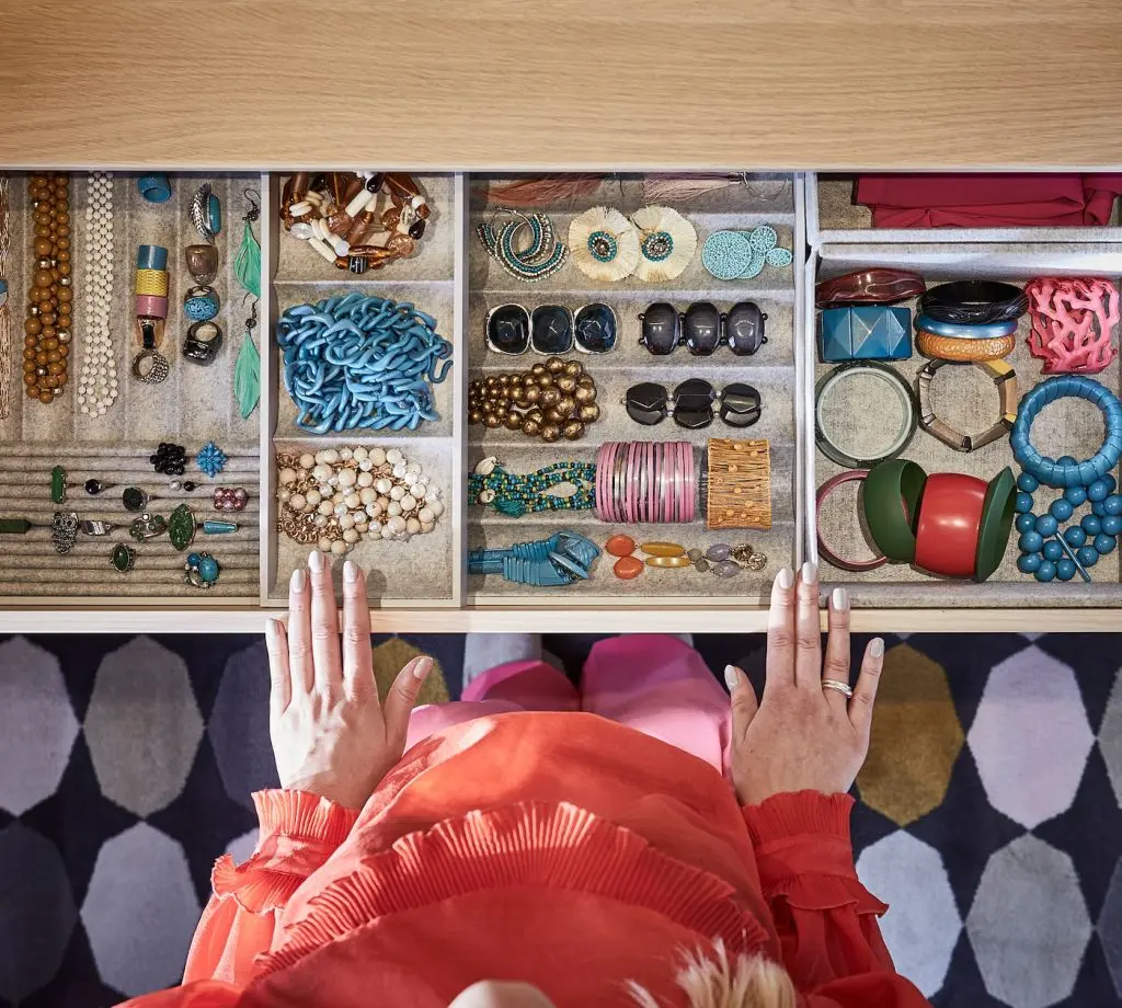Вставка поможет содержать в порядке все ваши бусы, кольца, серьги и другие аксессуары, такие как очки и часы.В отделениях разного размера у каждого аксессуара будет свое место. И все вещи удобно доставать, когда вставка размещена так, чтобы большие отделения были расположены сзади.Мягкий материал обеспечивает аккуратное хранение ваших вещей.Выдвижная полка обеспечивает хороший обзор и удобный доступ к вашим вещам.Благодаря интегрированному доводчику задвигается медленно плавно и бесшумно.Можно дополнить стеклянной полкой КОМПЛИМЕНТ, чтобы обеспечить обзор содержимого выдвижной полки.Направляющие для выдвижной полки прилагаются.Дизайнер