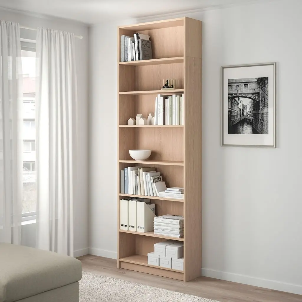 Стеллаж снабжен дополнительной верхней полкой: вы можете максимально задействовать поверхность стены.Съемные полки; устанавливайте на разном уровне в соответствии с необходимостью.Отделка из шпона. Для разных стен требуются различные крепежные приспособления. Подберите подходящие для ваших стен шурупы, дюбели, саморезы и т. п. (не прилагаются).Эту мебель необходимо крепить к стене с помощью прилагаемого стенного крепежа.Дизайнер