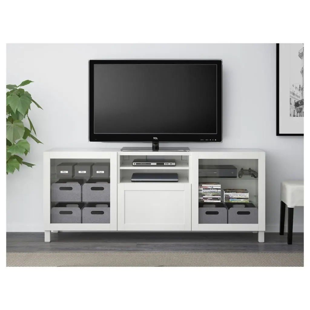 Благодаря функции плавного закрывания ящик закрывается мягко и бесшумно.Пульт дистанционного управления работает через стекло.Благодаря нескольким отверстиям на задней панели тумбы под ТВ провода от телевизора и других устройств всегда будут под рукой, но не на виду.Ножки придают комбинации БЕСТО более легкий вид, поднимая модули на полом. Кроме того, это упрощает уборку.Специальное отверстие в верхней панели обеспечит удобное и компактное размещение проводов.Эту мебель необходимо крепить к стене с помощью прилагаемого стенного крепежа.Макс. нагрузка на верхнюю панель этой тумбы под ТВ: 50 кг.Для разных стен требуются различные крепежные приспособления. Подберите подходящие для ваших стен шурупы, дюбели, саморезы и т. п. (не прилагаются).Внутренние элементы для организации хранения в модулях БЕСТО продаются отдельно.Дизайнер