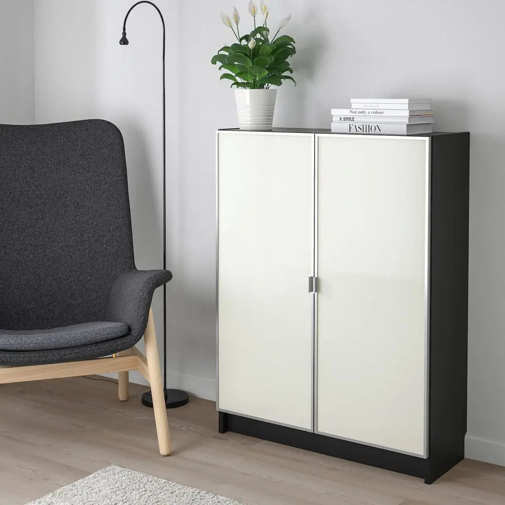 Создайте собственный дизайн дверцы, вставив фотографию или ткань между стеклом и панелью.Съемные полки; устанавливайте на разном уровне в соответствии с необходимостью.Отделка из шпона. Конструкция петель позволяет отрегулировать и выровнять дверцу по вертикали и по горизонтали. Эту мебель необходимо крепить к стене с помощью прилагаемого стенного крепежа.Будьте осторожны при обращении со стеклом! Из-за поврежденных краев и царапин на поверхности стекло может внезапно треснуть и/или разбиться. Избегайте ударов сбоку, там стекло наиболее уязвимо.Для разных стен требуются различные крепежные приспособления. Подберите подходящие для ваших стен шурупы, дюбели, саморезы и т. п. (не прилагаются).Белая/черная панель для закрепления за стеклом прилагается.2 полки прилагаются.Можно установить на угловой модуль, только если полка, находящаяся рядом с ним, без дверец.Дверь не подходит для стеллажей, которые были приобретены весной 2014 года или раньше.Дизайнер