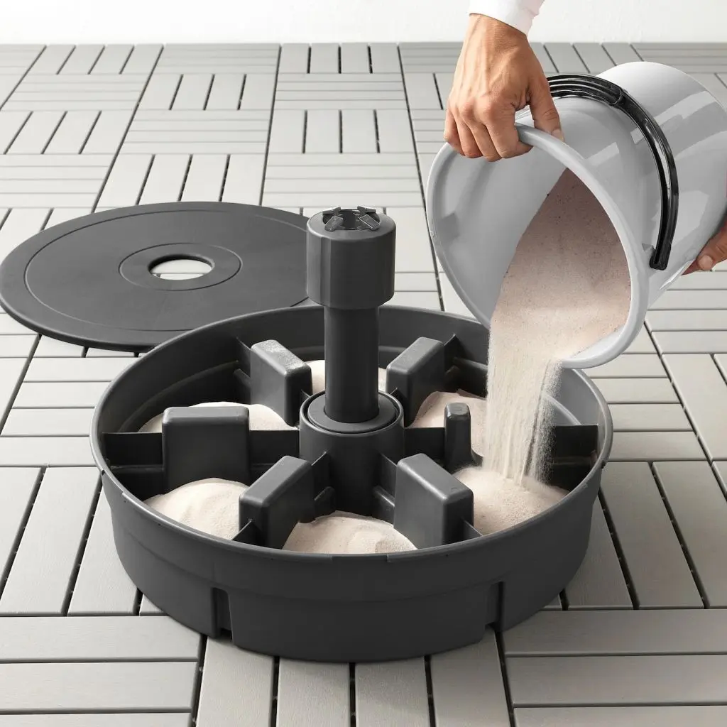 Ткань обеспечивает отличную защиту от УФ-лучей. Коэффициент защиты (UPF): 50+. Ткань с таким коэффициентом защиты блокирует 98 % ультрафиолетового излучения.Регулируемый угол наклона зонта обеспечивает защиту от солнца в течение всего дня.Технология крашения в массе позволяет сократить расход воды и красителей и при этом получить более стойкий цвет по сравнению с результатами традиционных методов окрашивания.Ремешок с пряжкой фиксирует купол зонта в сложенном виде.Благодаря влагоотталкивающей ткани купола зонт защитит вас от легкого дождя.Можно дополнить чехлом для зонта от солнца ТОСТЕРО (160 см).Всегда убирайте зонт, когда не используете его и в ветреную погоду.Основание зонта от солнца должно быть полностью заполнено песком.Необходимо примерно 25 литров (35 кг) песка.Зонт не обеспечивает защиту от отраженного и рассеянного ультрафиолетового излучения.Дизайнер