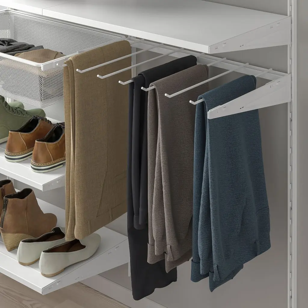 С вешалкой БОАКСЕЛЬ ваши брюки всегда будут в порядке, чтобы вы без труда достали нужную пару в идеальном состоянии и не тратили время на утомительные поиски.При необходимости эту комбинацию для хранения легко изменить или дополнить. Возможно, предлагаемая нами комбинация идеально подойдет для вашего интерьера, или вы можете создать решение для хранения самостоятельно.Внутренние элементы БОАКСЕЛЬ легко установить или снять, поэтому вы без труда реорганизуете пространство, измените или переместите решение при необходимости или по желанию.На платяную штангу БОАКСЕЛЬ 60 см можно повесить примерно 20 рубашек на плечиках.В сетчатую корзину БОАКСЕЛЬ 60 см можно положить 6 пар сложенных брюк или 10 футболок.На полку БОАКСЕЛЬ 60 см можно поставить ок. 3 пар обуви.На вешалку для брюк 60 см можно повесить ок. 7 пар брюк.Мебель необходимо крепить к стене.Различные материалы стен выдерживают разную нагрузку. Например, гипсокартон не может выдерживать вес, который могут выдержать стены из дерева, бетона или кирпича.Для разных стен требуются различные крепежные приспособления. Подберите подходящие для ваших стен шурупы, дюбели, саморезы и т. п. (не прилагаются).Если Вы не уверены, какой тип креплений использовать, обратитесь в специализированный магазин.Для сборки этой мебели требуются два человека.Дизайнер