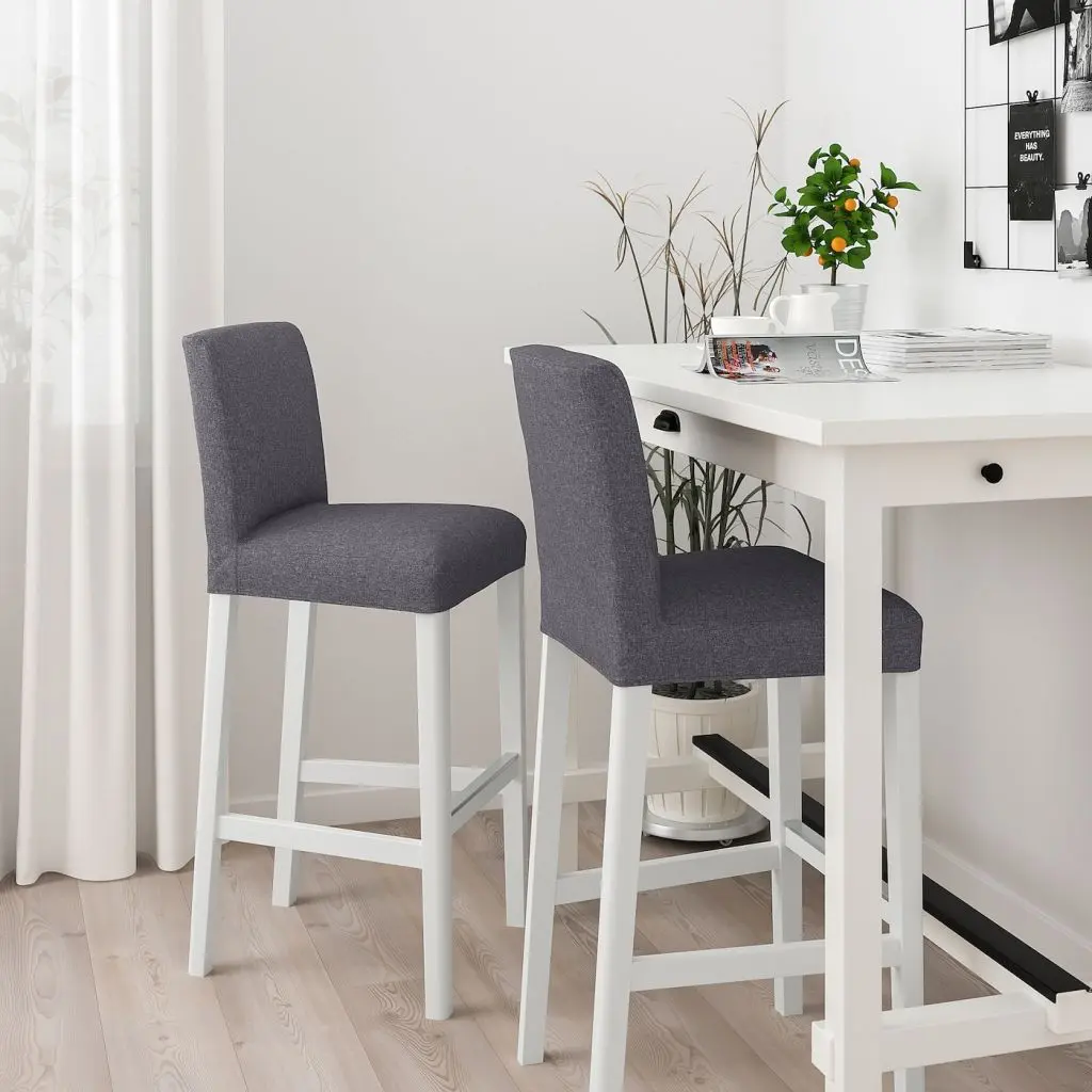 Барные табуреты серии БЕРГМУНД обеспечивают мягкость и комфорт. Есть разные чехлы, которые можно стирать, что особенно важно, если вы планируете шумную вечеринку.