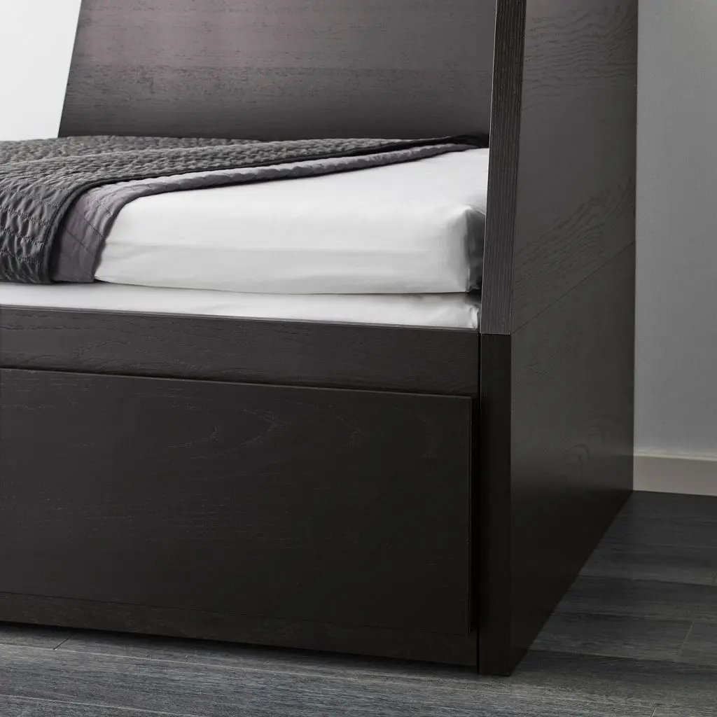 Днем на кушетке удобно сидеть, а ночью она легко превратится в односпальную или двуспальную кровать. В двух вместительных ящиках можно хранить одеяла, подушки и постельное белье. Отличное решение, особенно, если в комнате немного места.