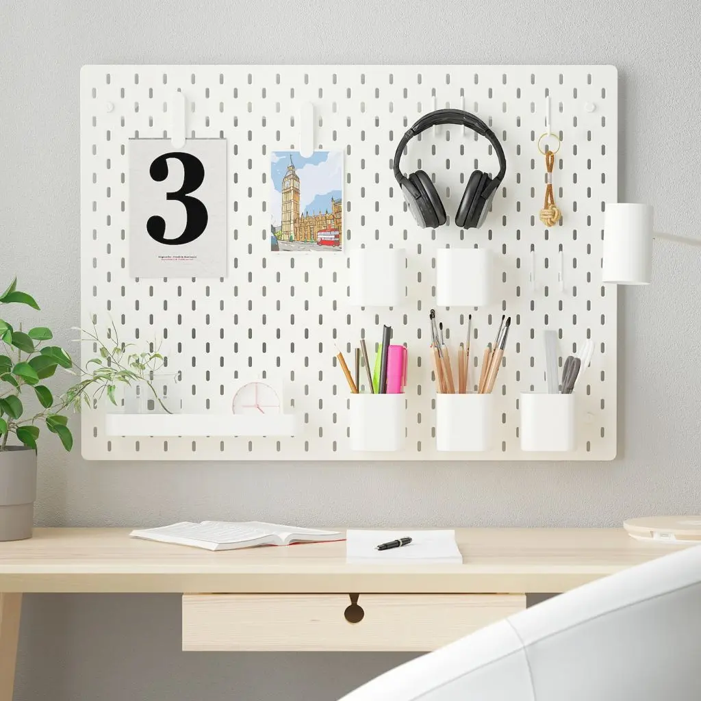 На настенной панели СКОДИС можно развесить предметы особой гордости, сохраняя при этом в доме порядок.Аксессуары легко закрепить в любом месте и переместить при необходимости.Для разных стен требуются различные крепежные приспособления. Подберите подходящие для ваших стен шурупы, дюбели, саморезы и т. п. (не прилагаются).Протестировано и одобрено для использования в ванной.