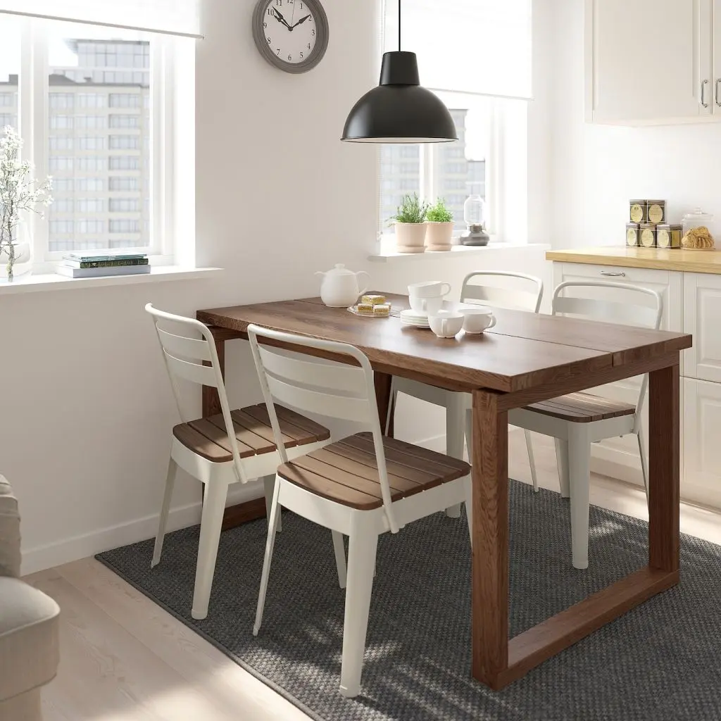 Стол и 4 стула, дубовый шпон/бежевый акация, 140x85 см