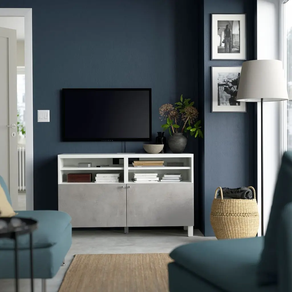 Благодаря слегка текстурированной поверхности фасад КЭЛЛЬВИКЕН напоминает бетон.Благодаря нескольким отверстиям на задней панели тумбы под ТВ провода от телевизора и других устройств всегда будут под рукой, но не на виду.Специальное отверстие в верхней панели обеспечит удобное и компактное размещение проводов.Вы можете использовать нажимной механизм или устройство для плавного закрывания. В первом варианте для открывания дверцы достаточно слегка нажать на нее. А во втором – гарантировано плавное и бесшумное закрывание.Съемные полки позволяют регулировать пространство.Организуйте и оптимизируйте систему для хранения БЕСТО, используя подходящие коробки и вставки.Тумбу под ТВ необходимо крепить к стене с помощью прилагающегося стенного крепежа.Мы рекомендуем, чтобы тумба была немного шире, чем установленный на ней телевизор. Эта тумба подходит для телевизора до 45 дюймов. Вы можете выбрать телевизор большего размера, если он не тяжелее указанной максимальной нагрузки на верхнюю панель тумбы.Верхняя панель этой тумбы предназначена для телевизора весом макс. 50 кг.Если вы выберете функцию плавного закрывания, рекомендуем дополнить фасады ручками, чтобы открывать ящики/шкафы было удобнее.Ручки продаются отдельно.