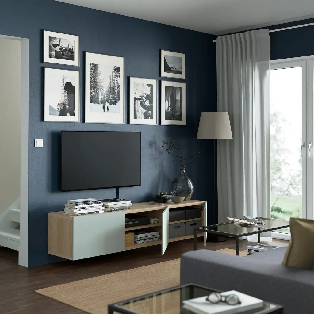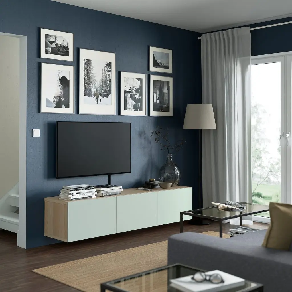 Чтобы подчеркнуть современный и лаконичный стиль интерьера, тумбу под ТВ БЕСТО можно закрепить на стене. Дополнительный плюс — ножки не будут мешать уборке.Благодаря нескольким отверстиям на задней панели тумбы под ТВ провода от телевизора и других устройств всегда будут под рукой, но не на виду.Специальное отверстие в верхней панели обеспечит удобное и компактное размещение проводов.Съемные полки позволяют регулировать пространство.Вы можете использовать нажимной механизм или устройство для плавного закрывания. В первом варианте для открывания дверцы достаточно слегка нажать на нее. А во втором – гарантировано плавное и бесшумное закрывание.Организуйте и оптимизируйте систему для хранения БЕСТО, используя подходящие коробки и вставки.Если вы выберете функцию плавного закрывания, рекомендуем дополнить фасады ручками, чтобы открывать ящики/шкафы было удобнее.Максимальная нагрузка на закрепленный на стене модуль зависит от материала стены.Для разных стен требуются различные крепежные приспособления. Подберите подходящие для ваших стен шурупы, дюбели, саморезы и т. п. (не прилагаются).Стоящая на полу тумба под ТВ должна быть закреплена к стене с помощью прилагающего стенного крепежа.