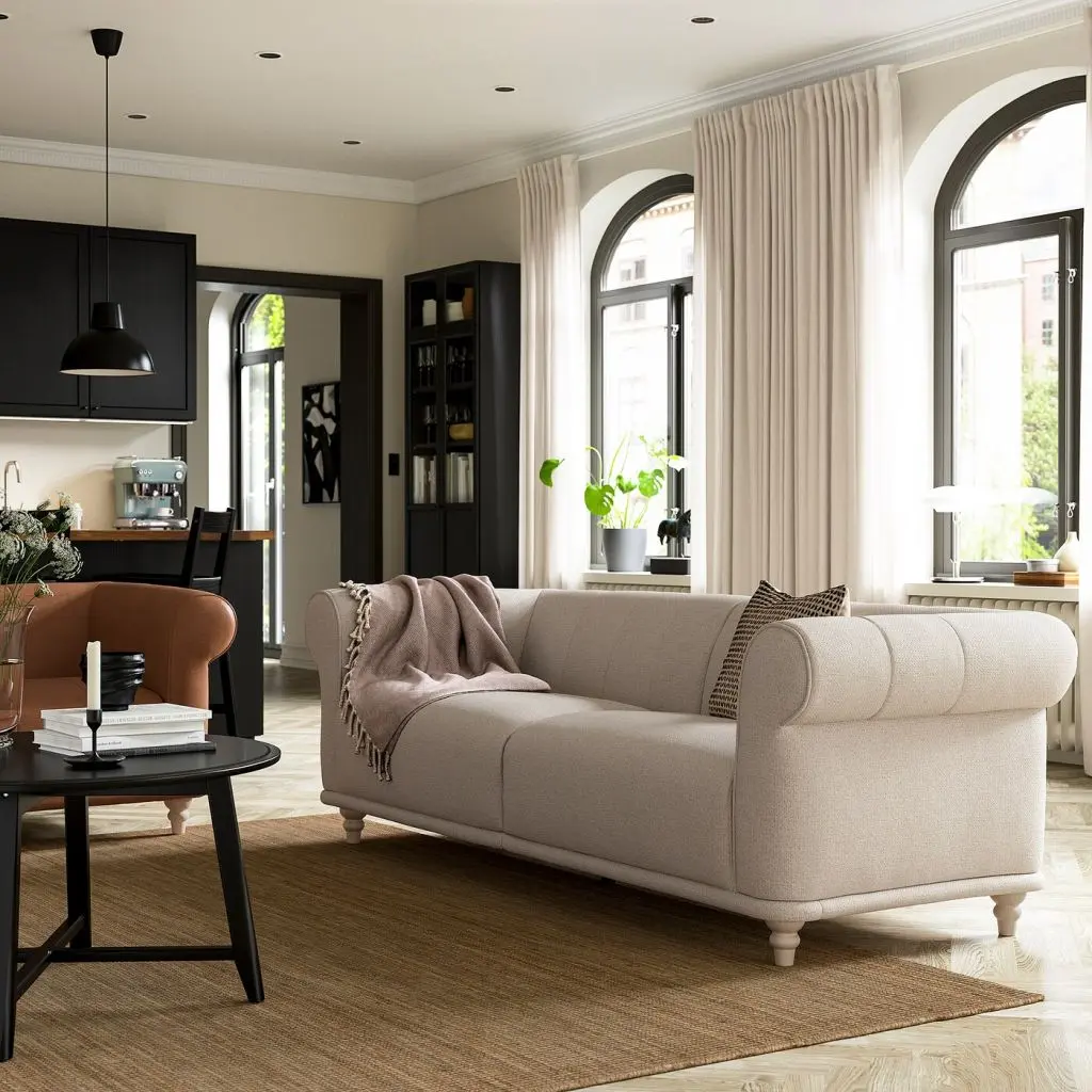 Диван ВИСКАФОРС станет ярким украшением вашей комнаты. Этот массивный предмет мебели в классическом стиле будто обнимает вас, когда вы погружаетесь в его глубокое, мягкое сиденье.