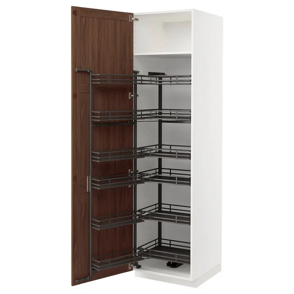 Высокий шкаф с выдвижным модулем, белый Энчёпинг/коричневый под грецкий орех, 60x60x220 см