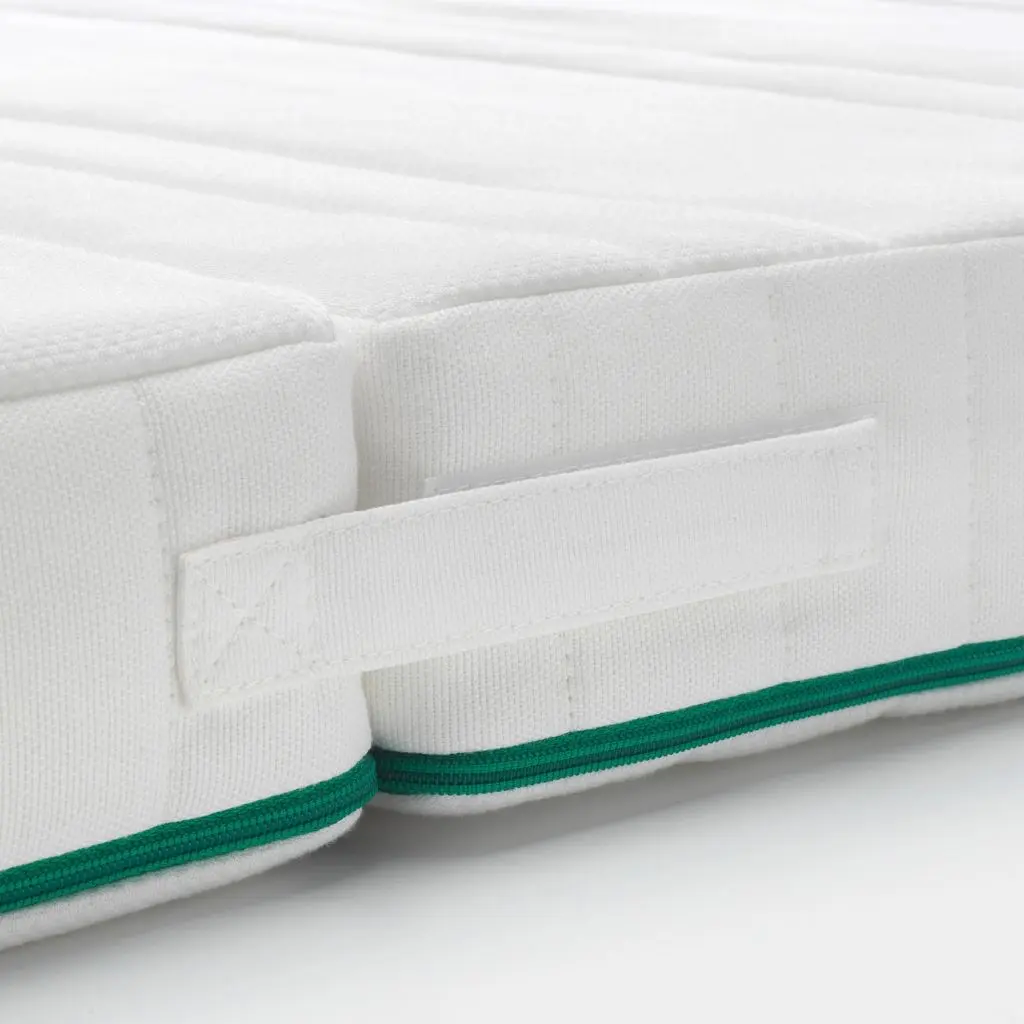Чехол легко снять и постирать в машине при 60 °C.Высокоэластичный пенополиуретан повторяет естественные изгибы тела, снижает мышечное напряжение и обеспечивает комфортную опору.Застежки-липучки надежно фиксируют дополнительные части матраса.Благодаря практичной ручке матрас легко переносить и переворачивать.Ребенок не сможет открыть молнию, так как для этого нужно воспользоваться скрепкой.Один матрас — три длины. С помощью двух дополнительных частей длину матраса можно увеличивать со 130 см до 165 и 200 см по мере роста ребенка.Подходит ко всем раздвижным кроватям из нашего ассортимента.Мы рекомендуем для детского матраса натяжные простыни ЛЕН из 100% хлопка.Для стирки чехол необходимо вывернуть наизнанку и застегнуть на молнию.Дополнительные секции легко добавить в изножье кровати по мере роста ребенка.Этот матрас состоит из трех частей, которые продаются в одной упаковке.Натяжная простыня ЛЕН представлена в двух вариантах размеров. Один размер подходит для матраса раздвижной кровати без дополнительных секций (80×130 см), второй — для матраса раздвижной кровати с 1 дополнительной секцией (80×160 см).Безопасная для детей молния, так как на ней нет «язычка». Молнию можно открыть и закрыть, вставив в бегунок канцелярскую скрепку. Не забудьте потом убрать скрепку.