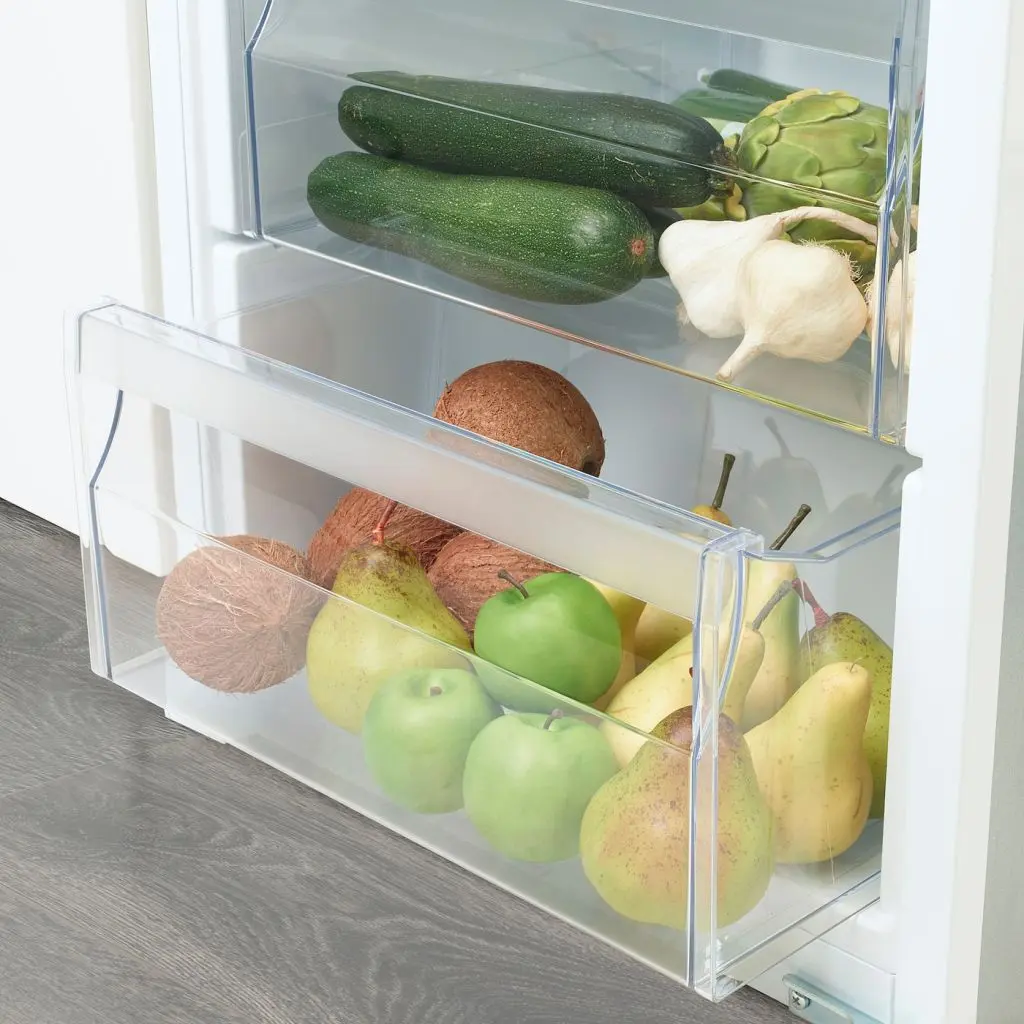Бесплатно 5 лет гарантии. Подробнее об условиях гарантии – в гарантийной брошюре.5 съемных полок из закаленного стекла с бортиками позволяют регулировать внутреннее пространство в соответствии с потребностями хранения.Холодильник оснащен встроенным вентилятором, который обеспечивает ровную температуру. Функция быстрого охлаждения большого количества свежих продуктов и напитков. Отличное решение для больших закупок.Электронный дисплей показывает статус важных функций.Если дверца закрыта неплотно, раздается звуковой сигнал.Светодиодное освещение. Источник света не требует технического обслуживания и должен работать в течение периода службы бытовой техники.Режим «Отпуск» позволяет оставить пустой закрытый холодильник, когда вы уезжаете в отпуск, без появления неприятного запаха.Гладкие внутренние стенки, регулируемые дверные отсеки и полки, съемные ящики — легко делать уборку.Прозрачные отделения на дверце и контейнеры для овощей обеспечивают удобный обзор содержимого холодильника.Дверь можно установить справа или слева на выбор.Полностью интегрировано с холодильником; дверцы сочетаются с другими шкафами.Класс потребления энергии: А+.Расход энергии: 115 кВт*ч в год.Климатический класс: SN/N/ST/T.Уровень шума: 34 дБ (A).Напряжение: 220-240 В.Объем холодильной камеры: 314 л.Охлаждающий агент: R600a.Не требующее обслуживания светодиодное освещение (LED).Это встраиваемая модель.5 съемных полок из закаленного стекла прилагаются.2 ящика для овощей/фруктов прилагаются.1 лоток для яиц прилагается.Дополнить петлями УТРУСТА 95°, продаются отдельно.Встраиваемый холодильник устанавливается в кухонный шкаф.