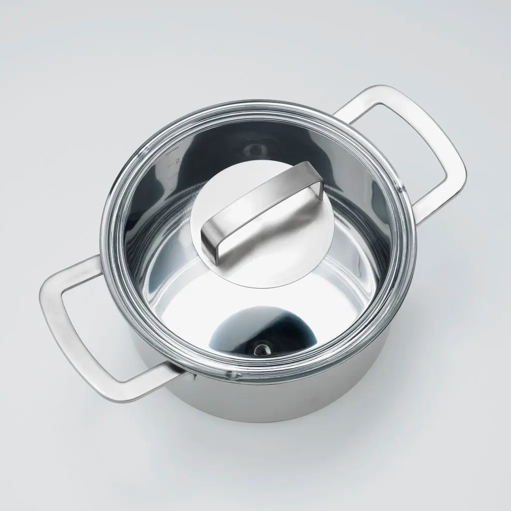 Бесплатно 15 лет гарантии. Подробнее об условиях гарантии – в гарантийной брошюре.Стеклянная крышка позволяет контролировать процесс приготовления блюда. С мерной шкалой на внутренней поверхности – легко измерить количество жидкости.Трехслойная конструкция дна: слой алюминия между двумя слоями нержавеющей стали. Обеспечивает равномерное нагревание, поэтому пища не пригорает и не прилипает к поверхности.Благодаря форме ручек маленькие кастрюли можно ставить в большие, что обеспечивает экономию места в кухонном шкафу.Подходит для всех типов варочных панелей, включая индукционную.Внешняя поверхность из матовой стали, на которой пятна менее заметны, чем на глянцевой поверхности.Благодаря отверстию для вентиляции давление снижается и содержимое не выкипает.Сделано из нержавеющей стали. Прочный и простой в уходе материал.Эту посуду можно использовать в духовке, так как она изготовлена из металла, а крышка – из жаропрочного стекла.Использование крышки обеспечивает быстрое закипание, что сокращает время приготовления и расход энергии.Можно использовать с вставкой-пароваркой СТАБИЛЬ.Дизайнер
