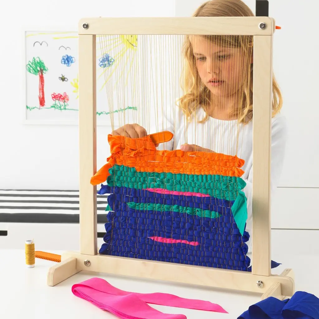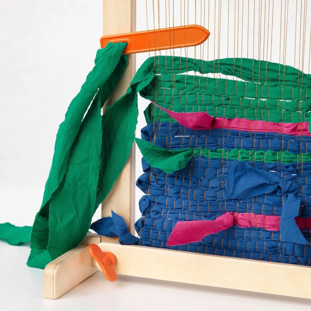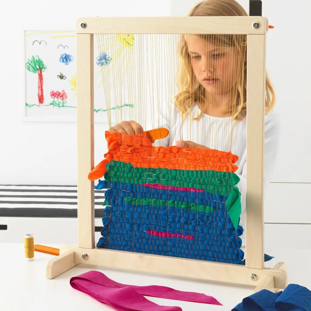 На этом станке можно сделать все что угодно. Возможно, это будет коврик для игрушек или ткань, из которой потом можно сшить сумку.Маленькие ножки обеспечат устойчивость станка на столе. Станок также можно поставить на колени.Станок можно отрегулировать для более плотного или более свободного плетения.Ткачество развивает у ребенка способность к концентрации внимания и мелкую моторику.Рекомендовано для детей от 6 лет.ВНИМАНИЕ: предназначено для детей от 3 лет. Длинный шнур может стать причиной удушения.ПРЕДУПРЕЖДЕНИЕ! Сборка должна осуществляться взрослым. Будьте осторожны, открывая упаковку. Содержит мелкие детали, которые на стадии сборки могут быть опасны для детей младше 3 лет.В набор входит: 1 ткацкий станок, 1 гребень, 1 челнок, 1 катушка ниток и 4 мотка тесьмы разных цветов.Инструкции по ткачеству прилагаются.Дизайнер