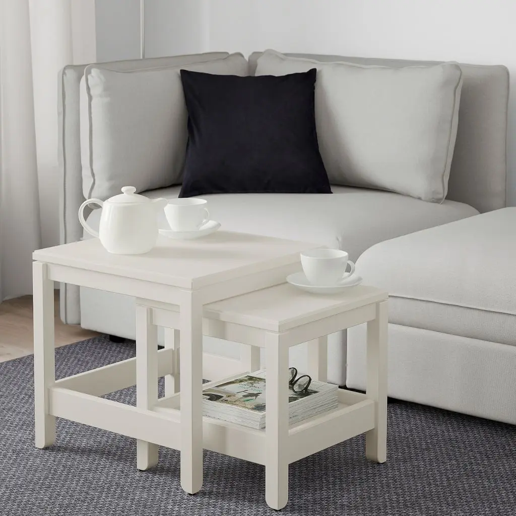 Столики ХАВСТА из массива сосны с проработанными деталями и брашированной поверхностью подчеркнут уютную атмосферу вашего дома. Столики можно поставить по отдельности или один под другой для экономии места.