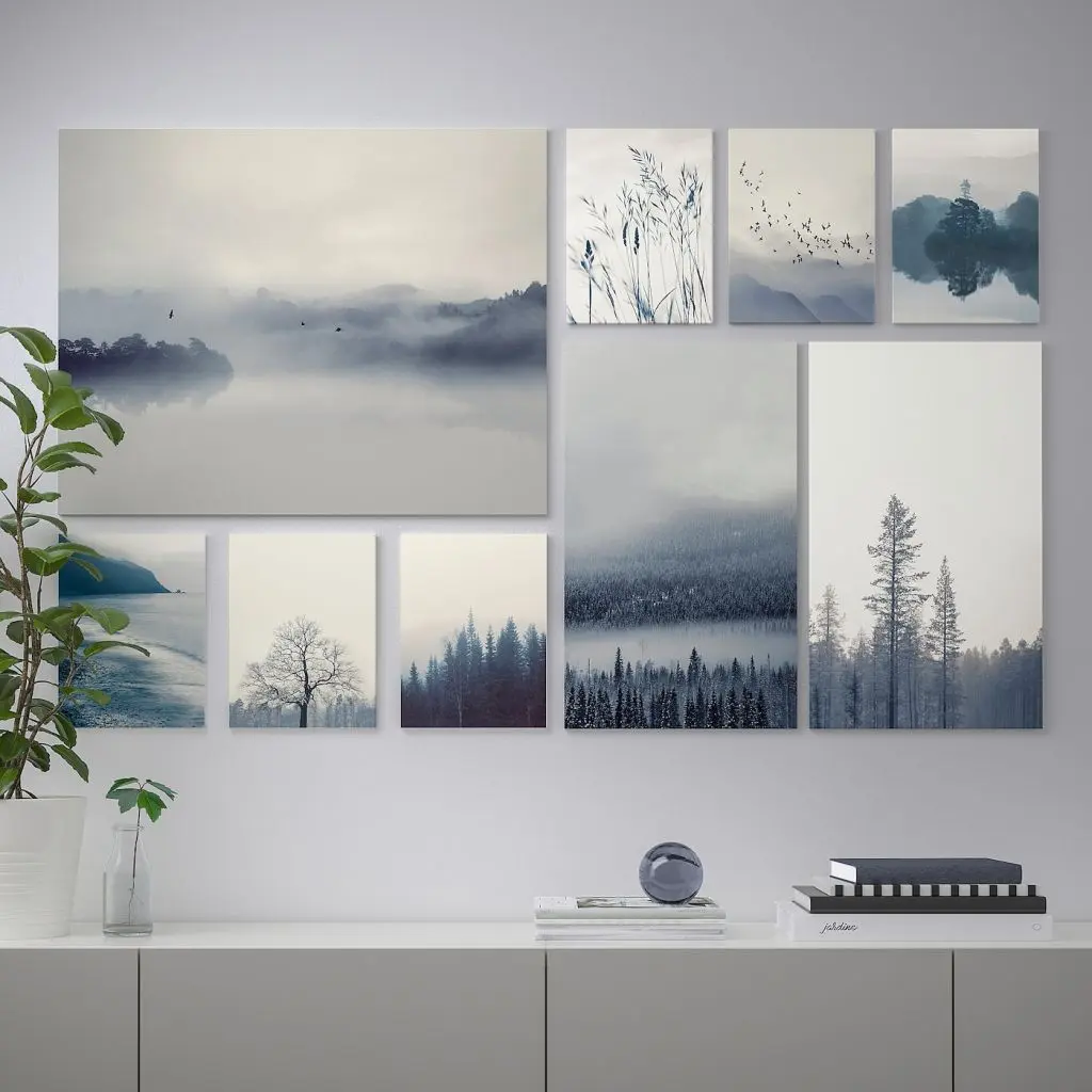 Прилагающийся шаблон и сочетающиеся по стилю изображения позволят вам без труда создать собственный коллаж.Шаблон можно разделить на несколько коллажей.Картина или постер станут настоящим украшением вашего интерьера и подчеркнут его стиль.В набор входят 1 шаблон для развешивания, 6 картин 24×32 см, 2 картины 39×65 см и 1 картина 82×65 см. Для разных стен требуются различные крепежные приспособления. Подберите подходящие для ваших стен шурупы, дюбели, саморезы и т. п. (не прилагаются).Шурупы для крепления к стене не прилагаются.
