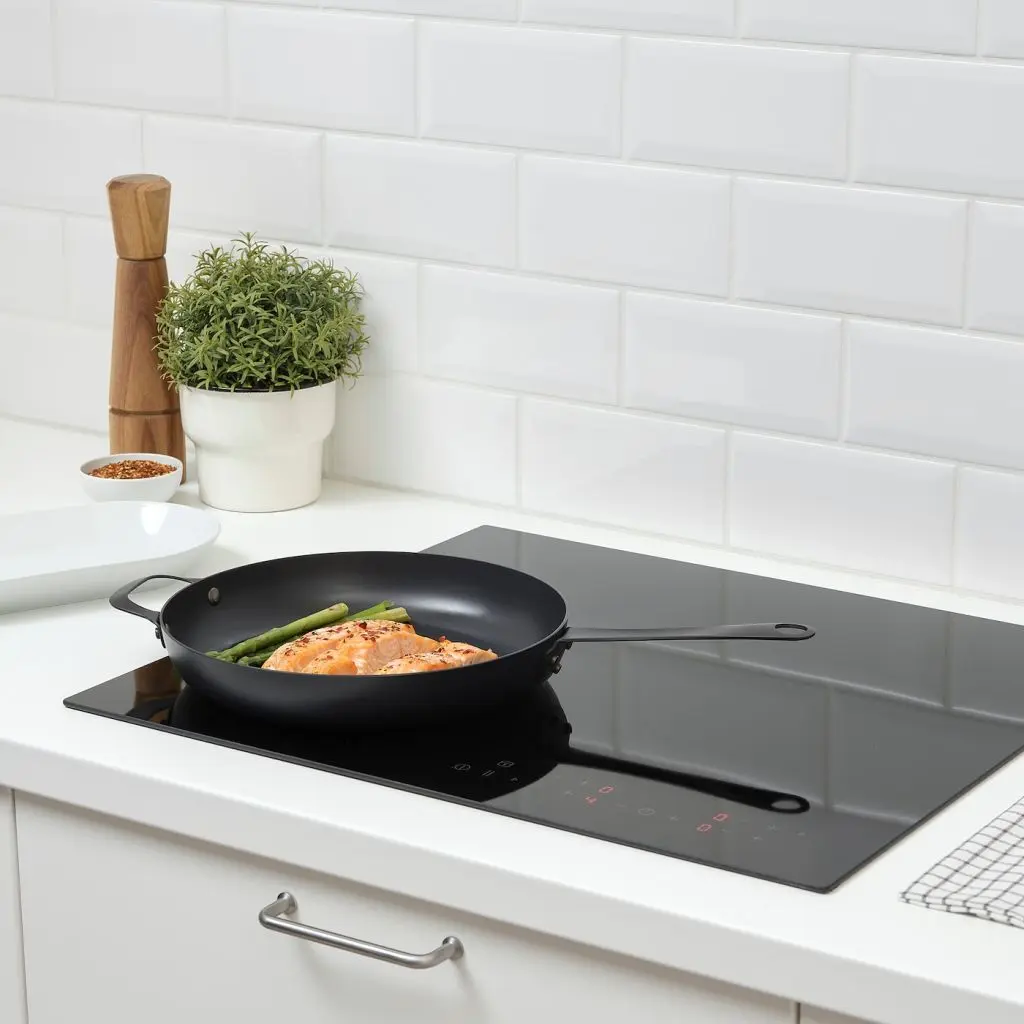 Бесплатно 25 лет гарантии. Подробнее об условиях гарантии – в гарантийной брошюре.Подходит для всех типов варочных панелей, включая индукционную.Изготовлено из углеродистой стали, обеспечивающей равномерное нагревание и прожаривание, а также сохранение тепла.Посуда полностью изготовлена из металла, поэтому ее можно также использовать в духовке.Легко поднимать и переносить благодаря двум ручкам.Чтобы прокалить кастрюлю/сковороду из углеродистой стали, обработайте поверхность маслом. Затем прогрейте кастрюлю/сковороду в духовке или на плите при температуре макс. 150 °С в течение как минимум часа. Дайте посуде остыть и вытрите излишки масла.При появлении коррозии, пятен от пищи, прилипшей или пригоревшей пищи кастрюлю/сковороду можно почистить металлической мочалкой или абразивной губкой, а затем повторно прокалить.В целях экономии энергии используйте на конфорке такого же или меньшего диаметра.Кастрюли/сковороды нагреваются в процессе использования. При их перемещении обязательно пользуйтесь прихваткой.Не подвергайте посуду резким перепадам температур, например, не рекомендуется ставить ее на горячую варочную панель.На производстве этот товар был обработан раститетельным маслом.Дизайнер