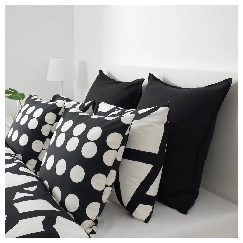 Орнамент в горошек в черно-белой гамме всегда актуален. Чехол на подушку КЛАРАСТИНА прекрасно сочетается с гардинами этой серии.
