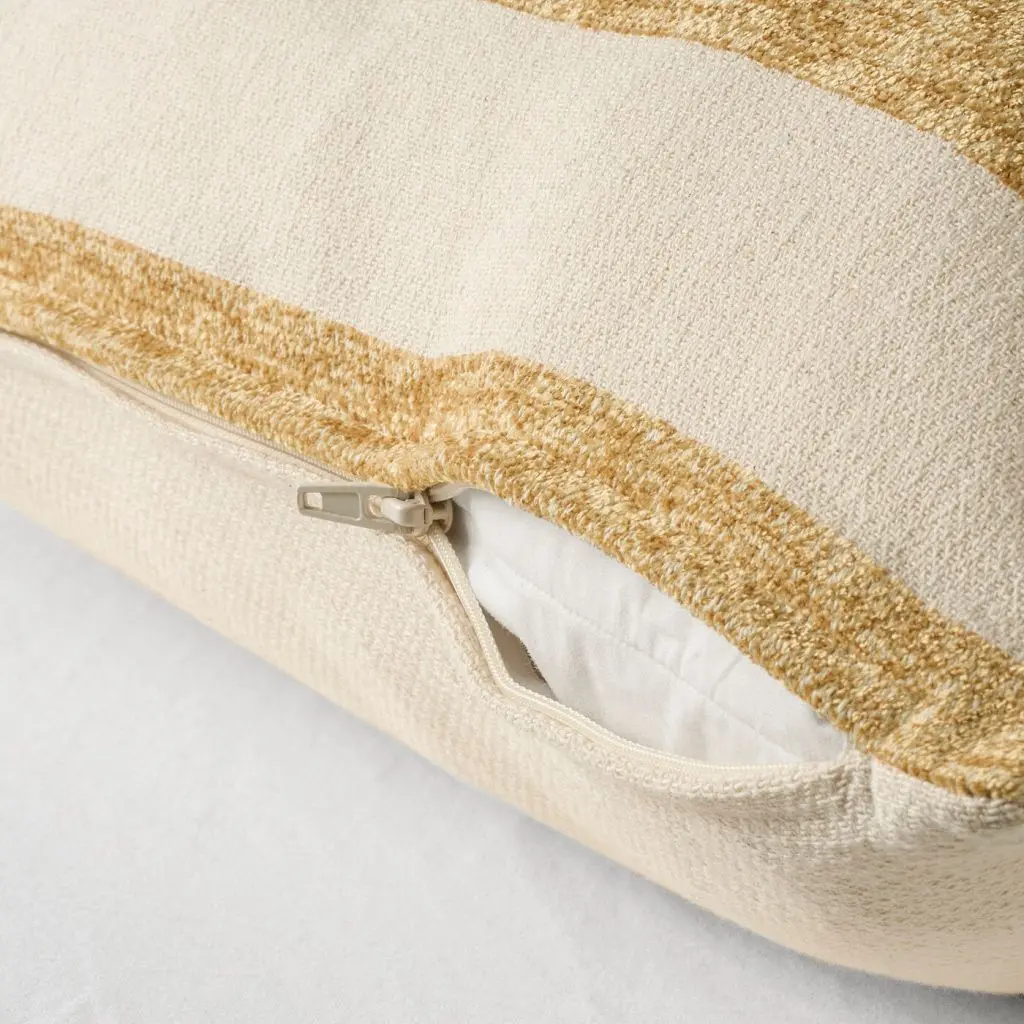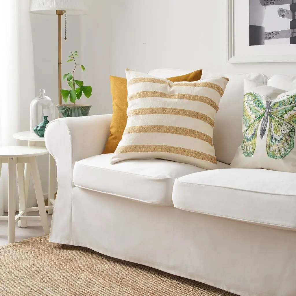 Подушка КНИППАРВ из мягкой приятной на ощупь шенилловой ткани с классическим золотисто-желтыми полосками украсит ваш интерьер и прекрасно сочетается с другим текстилем для дома.
