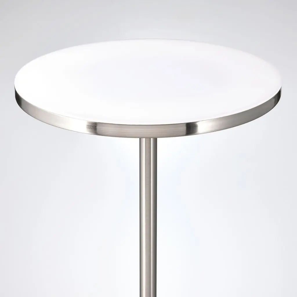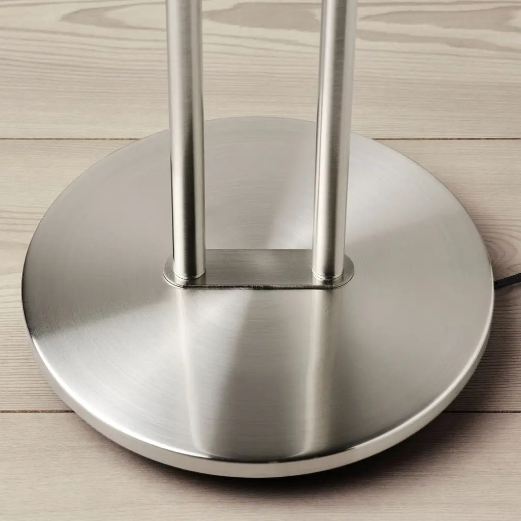 Две лампы в современном стиле на одном прочном основании. Наверху расположен направленный вверх торшер с регулируемой яркостью, который хорошо освещает комнату. Немного ниже находится лампа для чтения, которую легко направить именно туда, куда нужно.