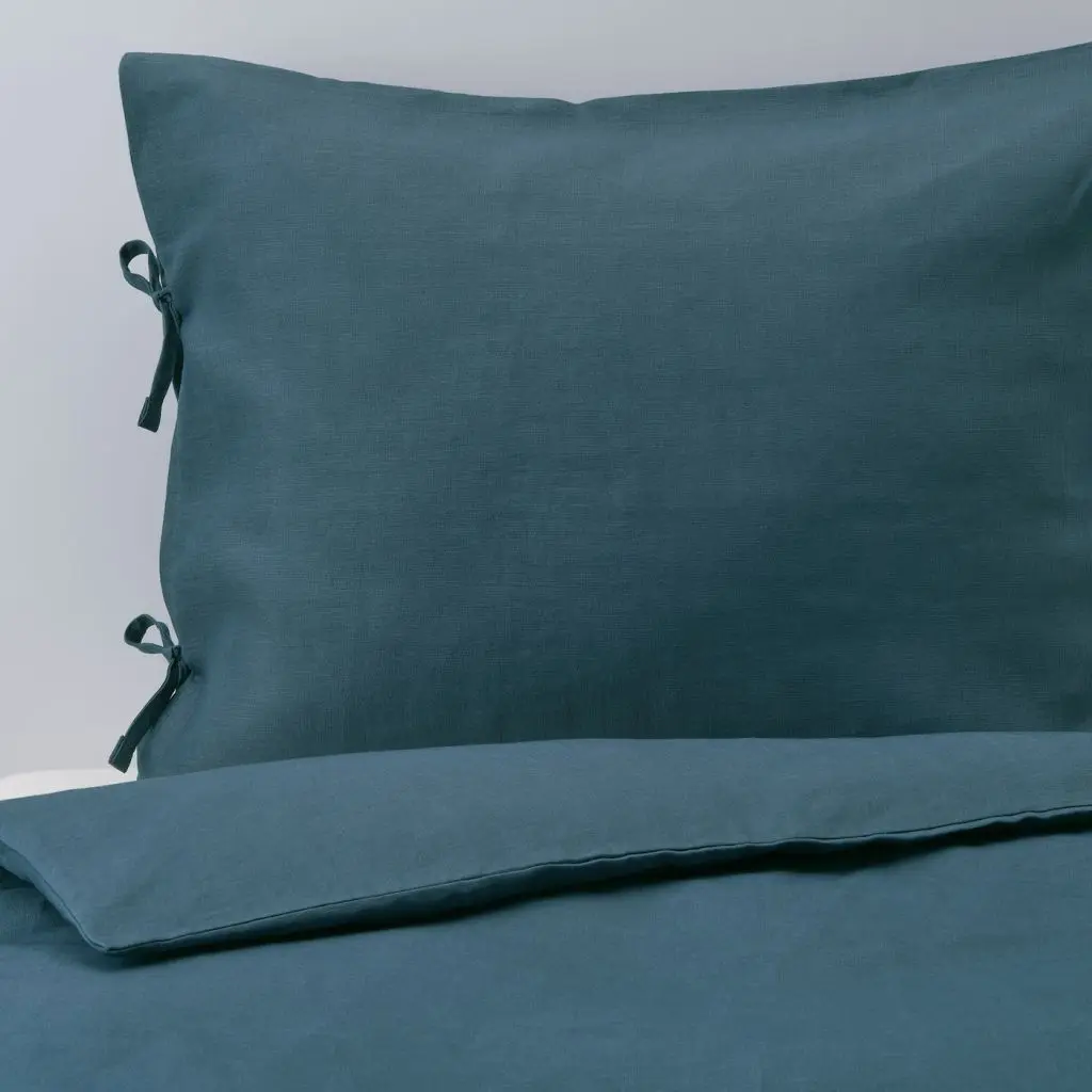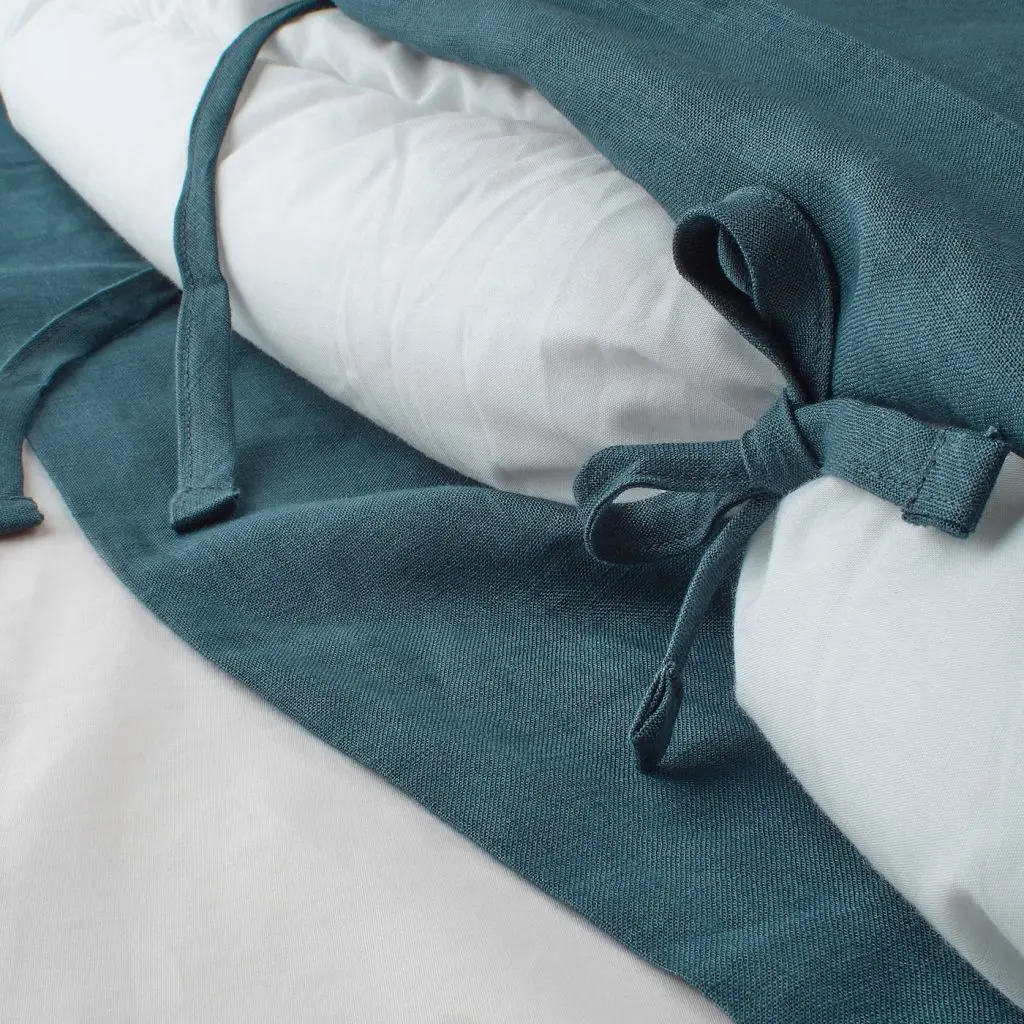 Постельное белье из льна подарит вам сладкие сны. Этот материал с приятным легким блеском эффективно пропускает воздух, впитывает влагу и с годами становится мягче. Благодаря декоративным лентам на пододеяльнике одеяло не выбивается.