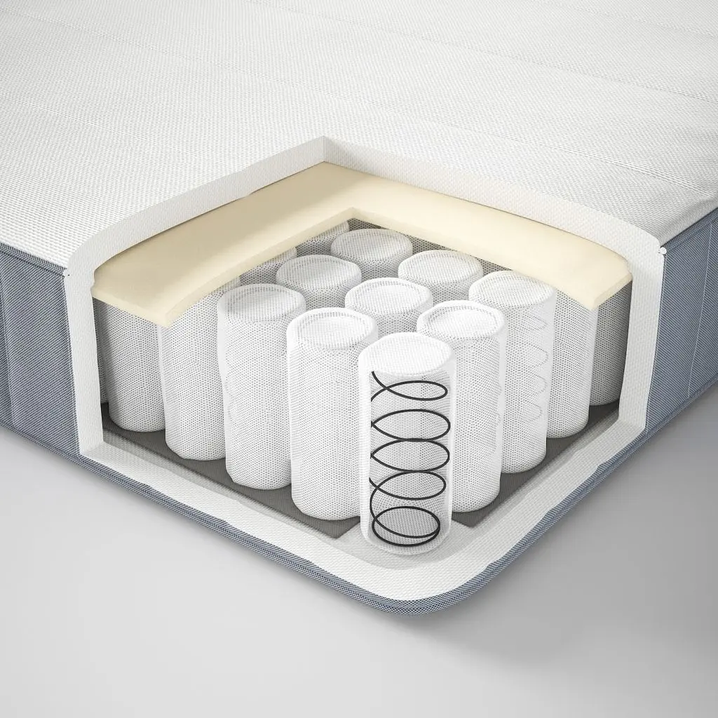 Очень жесткий матрас высотой 20 см с независимыми пружинами карманного типа и слоем пенополиуретана для дополнительного комфорта и оптимальной поддержки. Чехол из мягкой эластичной ткани с дополнительным слоем пенополиуретана делает матрас еще удобнее.