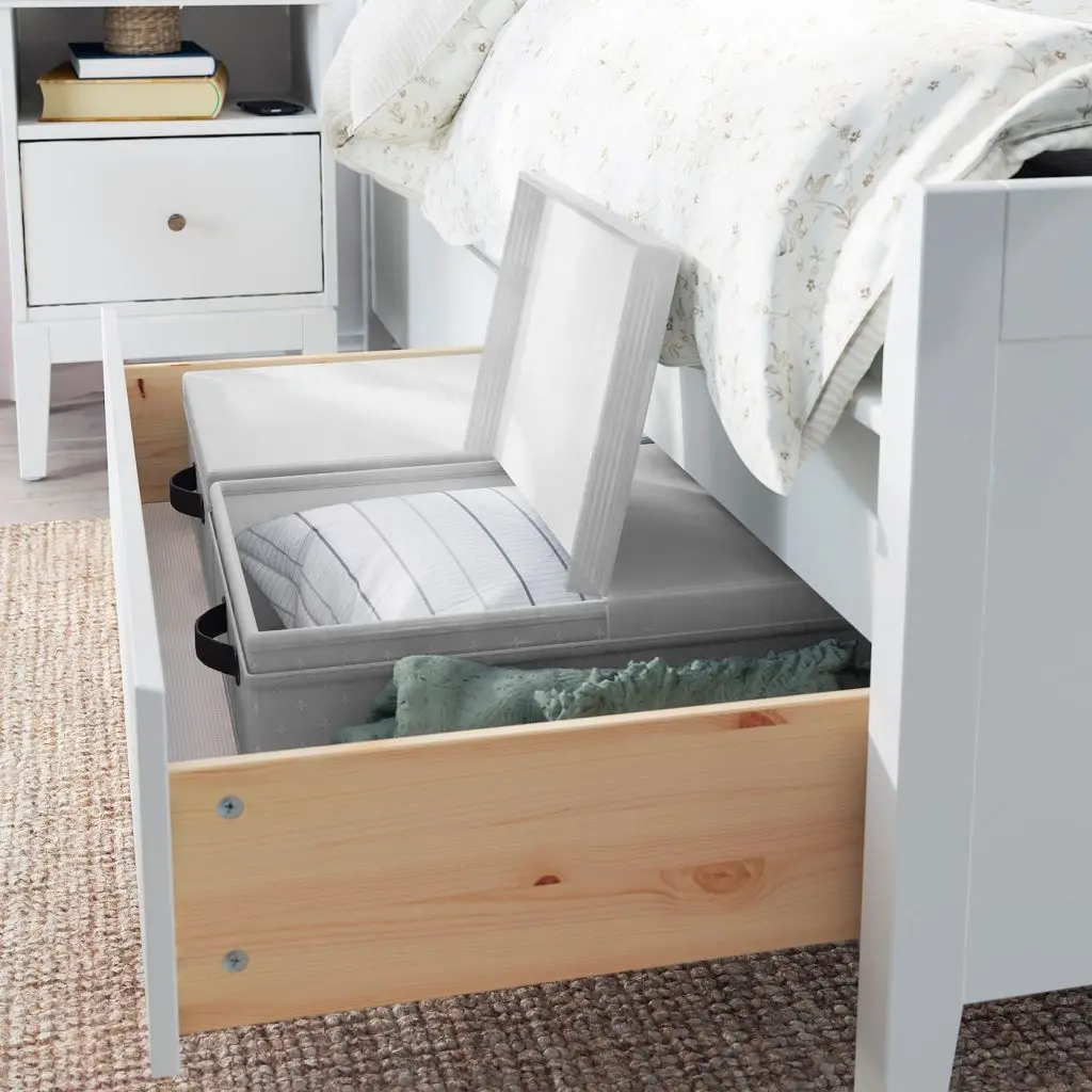 Эта декоративная коробка очень практична, ее можно поставить в гардероб, на полку стеллажа или просто на пол. Несколько коробок можно ставить одну на другу.Складная крышка обеспечивает удобный доступ к содержимому, даже если коробка размещена в ящике или несколько коробок стоят одна на другой.Отлично подходит для хранения свитеров, шапок и шарфов, а также игр, наушников и гаджетов.Орнамент и стиль органайзеров прекрасно сочетаются с дизайном мебели ХАУГА и ИДАНЭС, но, конечно, эти аксессуары можно использовать для организации хранения в любой другой мебели.Благодаря ручкам удобно выдвигать и перемещать.Ткань изготовлена из переработанного полиэстера. Использование переработанных материалов делает нас еще на шаг ближе к более экологичному будущему.Сочетается с другими товарами серий БЛЭДДРАРЕ и БАКСНА.Можно дополнить другими товарами серии СТОРСТАББЕ.Можно использовать в помещениях с повышенным уровнем влажности.Дизайнер