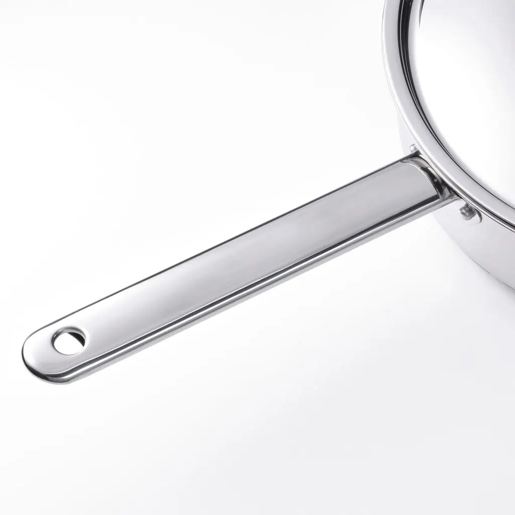 Подходит для всех типов варочных панелей, включая индукционную.С закругленной внутренней поверхностью; легко помешивать или взбивать содержимое.Нержавеющая сталь – прочный и простой в уходе материал.Трехслойная конструкция дна: слой алюминия между двумя слоями нержавеющей стали. Обеспечивает равномерное нагревание, поэтому пища не пригорает и не прилипает к поверхности.Вы можете готовить при небольшом уровне нагрева и экономить энергию, так как нержавеющая сталь хорошо нагревается и долго удерживает тепло.Благодаря отверстию на ручке удобно вешать.Эту кастрюлю с крышкой можно использовать на плите и в духовке, а потом подать готовое блюдо на стол.Благодаря отверстию для вентиляции давление снижается и содержимое не выкипает.Использование крышки обеспечивает быстрое закипание, что сокращает время приготовления и расход энергии.Посуда полностью изготовлена из металла, поэтому ее можно также использовать в духовке.Для создания антипригарной поверхности этого товара не используется ПФОК (перфтороктановая кислота).Дизайнер
