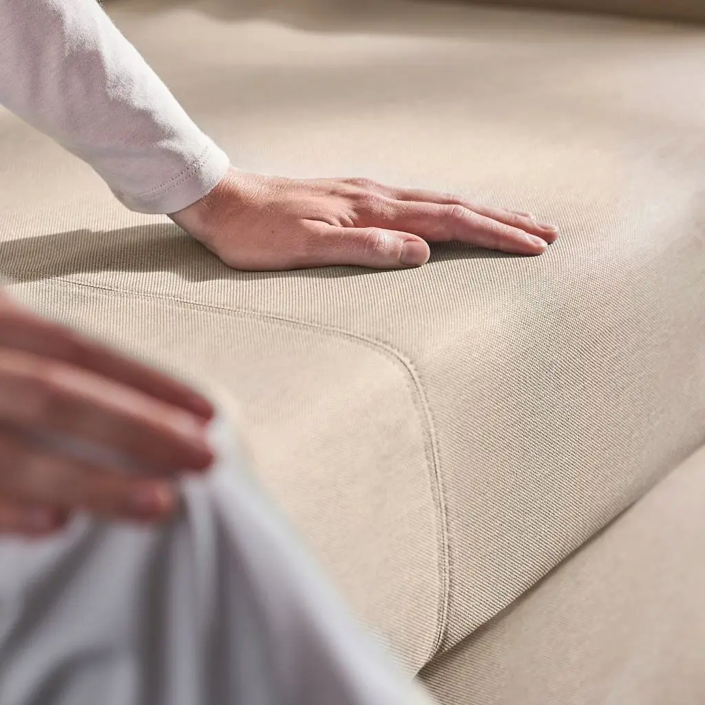 Износостойкий чехол из полиэстера с плотной фактурой.Отделение под сиденьем для хранения постельного белья и т.п.Диван легко и быстро раскладывается в комфортную двуспальную кровать, для этого нужно поднять сиденье, одновременно опустив спинку.Подушки можно расположить таким образом, чтобы обеспечить комфортную глубину дивана и оптимальную поддержку спины.Глубина сиденья и общая высота зависят от того, под каким углом расположены незакрепленные подушки спинки.5 подушек спинки прилагаются.