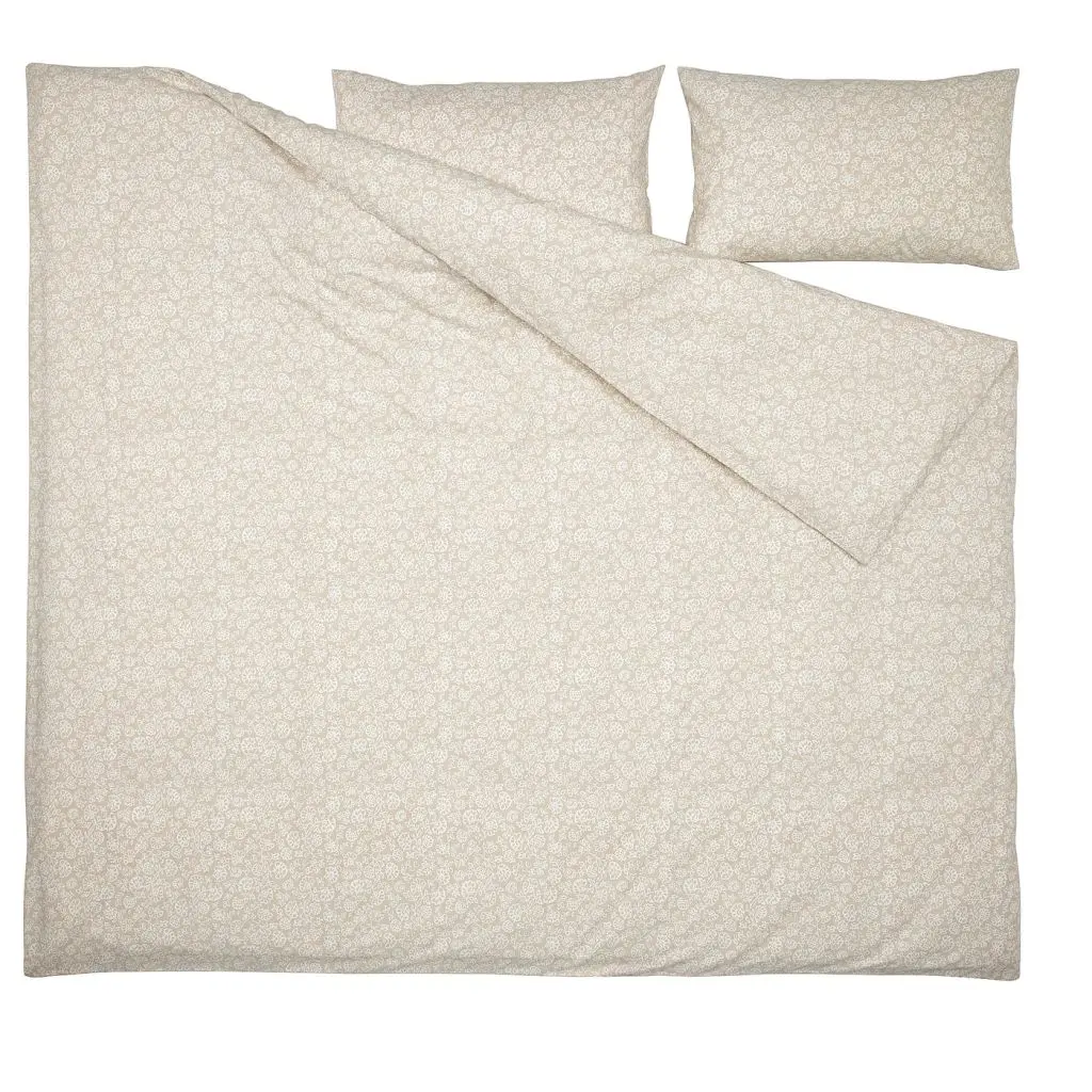 Нежный белый цветочный орнамент на бежевом фоне этого постельного белья сделает спальню гармоничнее. Ткань из хлопка и вискозы прекрасно пропускает воздух и способствует поддержанию в постели комфортного микроклимата.