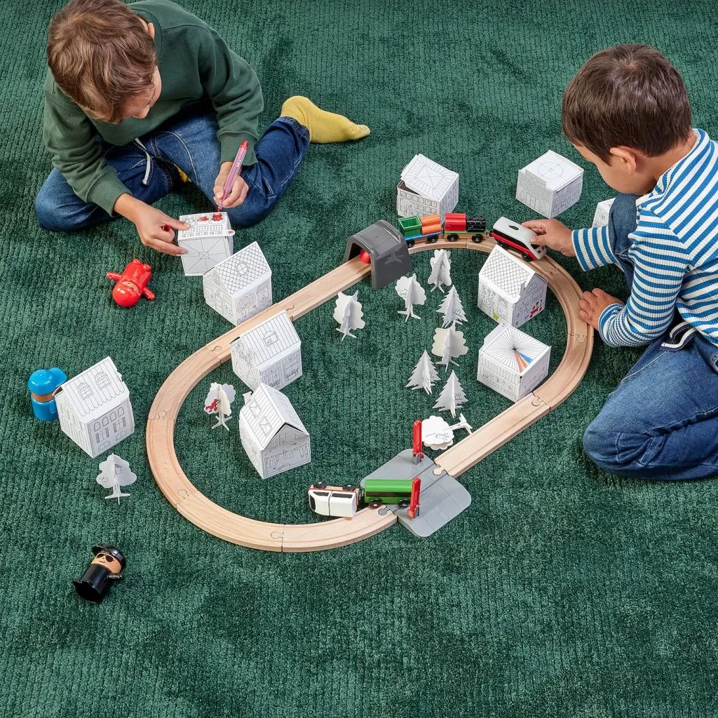 Идеальный подарок для будущего архитектора. Из этих картонных шаблонов ребенок сможет легко построить целый город — а потом раскрасить его в любимые цвета.